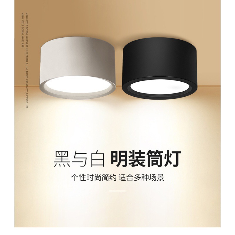 明装筒灯圆形免开孔吸顶客厅卧室玄关背景走廊过道led天花灯射灯