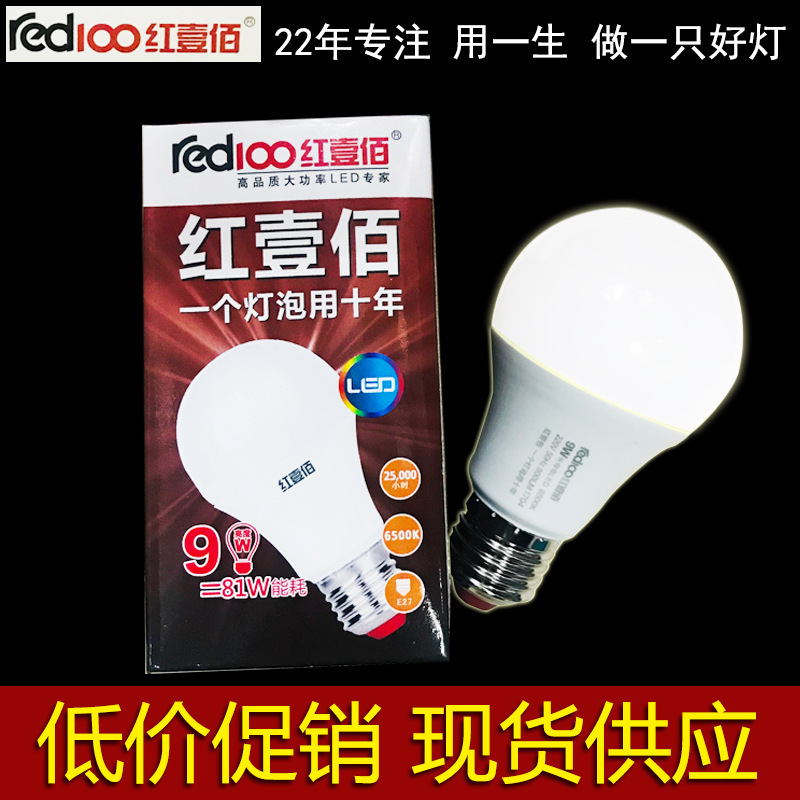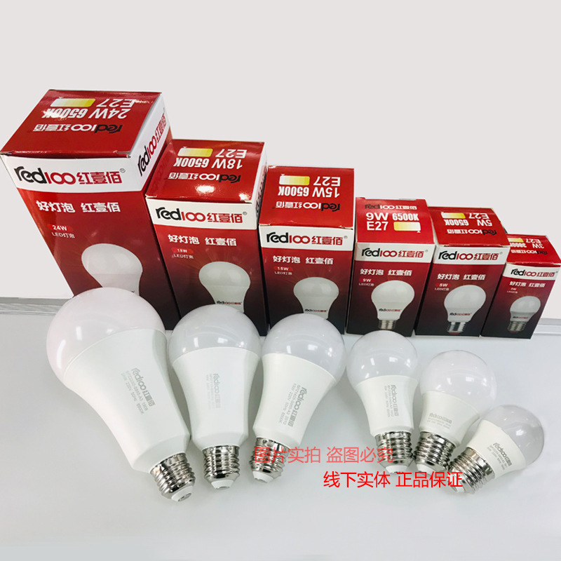 红壹佰灯泡LED球泡LED大功率节能灯5W9W18W白光家用厂房车间仓库