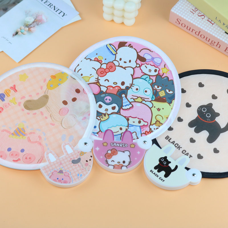 卡通折叠小团扇定制LOGO便携夏季出门户外自拍反光板手摇团扇