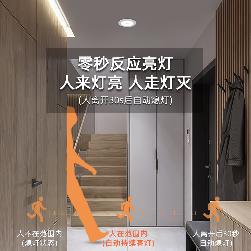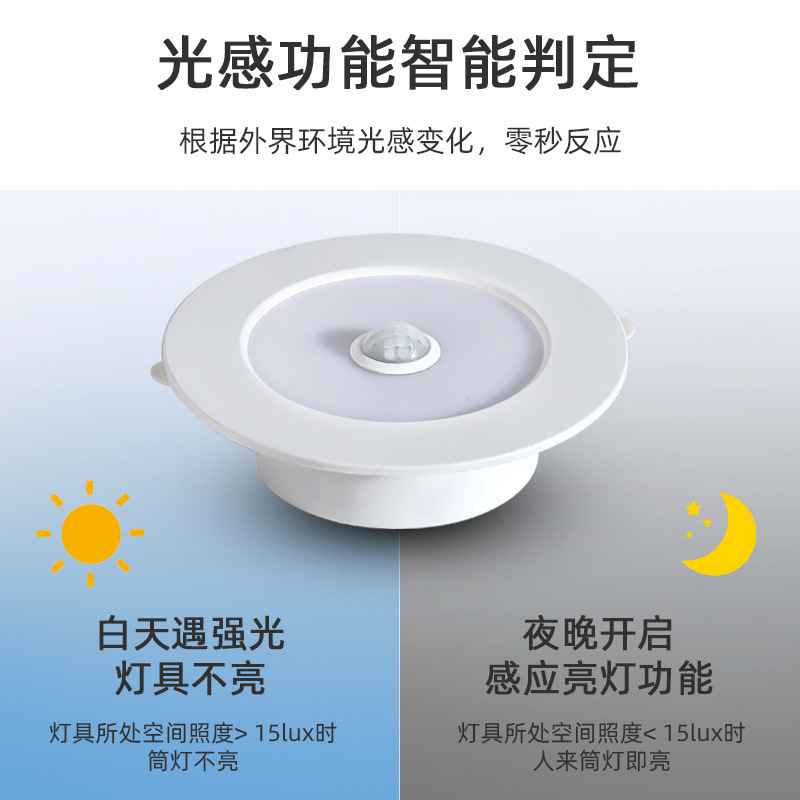 LED雷达感应筒灯红外人体声光控天花灯物业小区楼过道5W9W走廊2.5