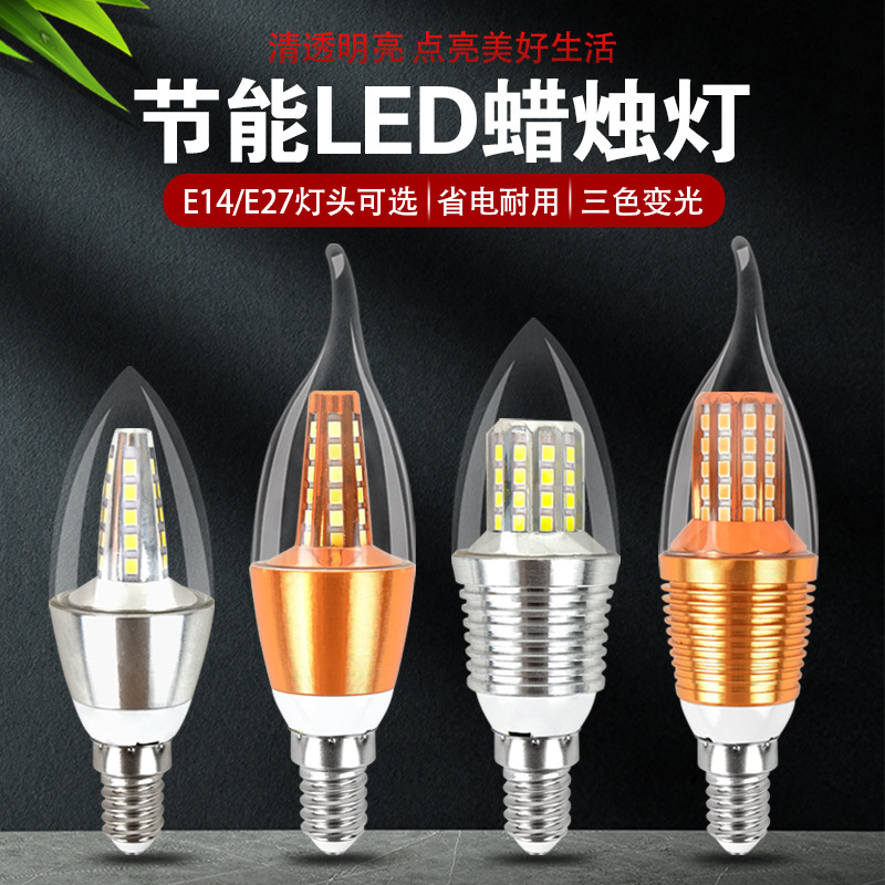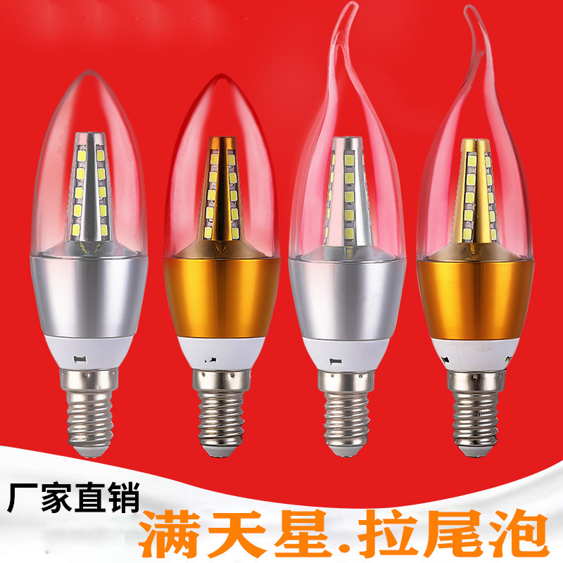 LED蜡烛灯泡E27e14螺口尖泡拉尾室内水晶吊灯客厅节能灯照明 光源