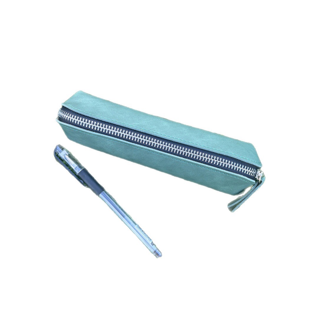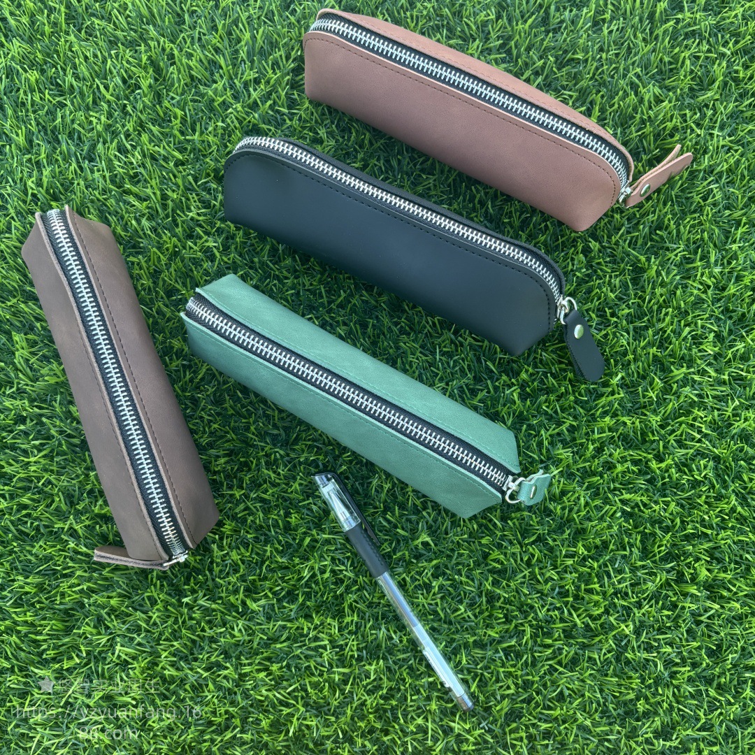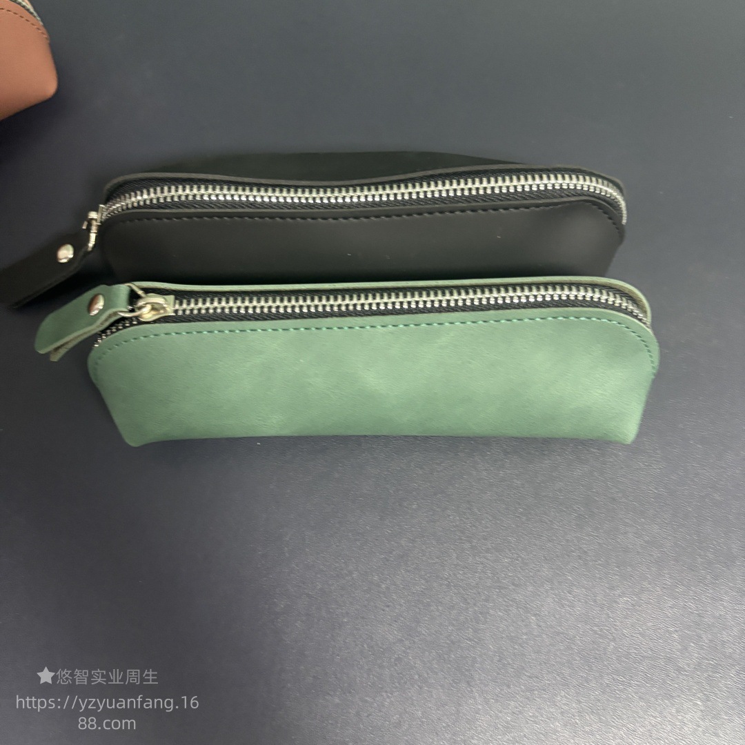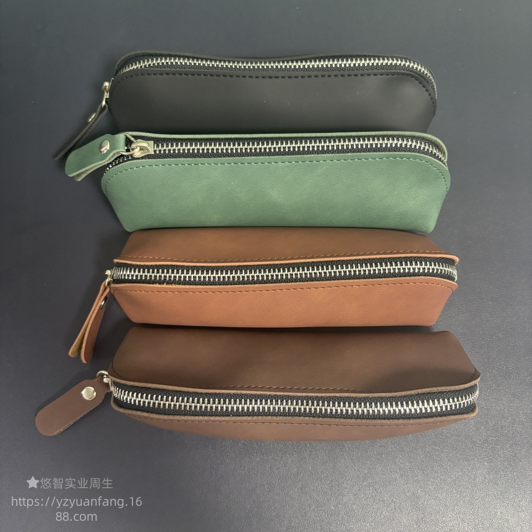 现货日韩时尚学生皮革笔袋简约单面皮革文具盒男女学生大容量笔袋