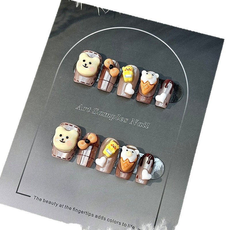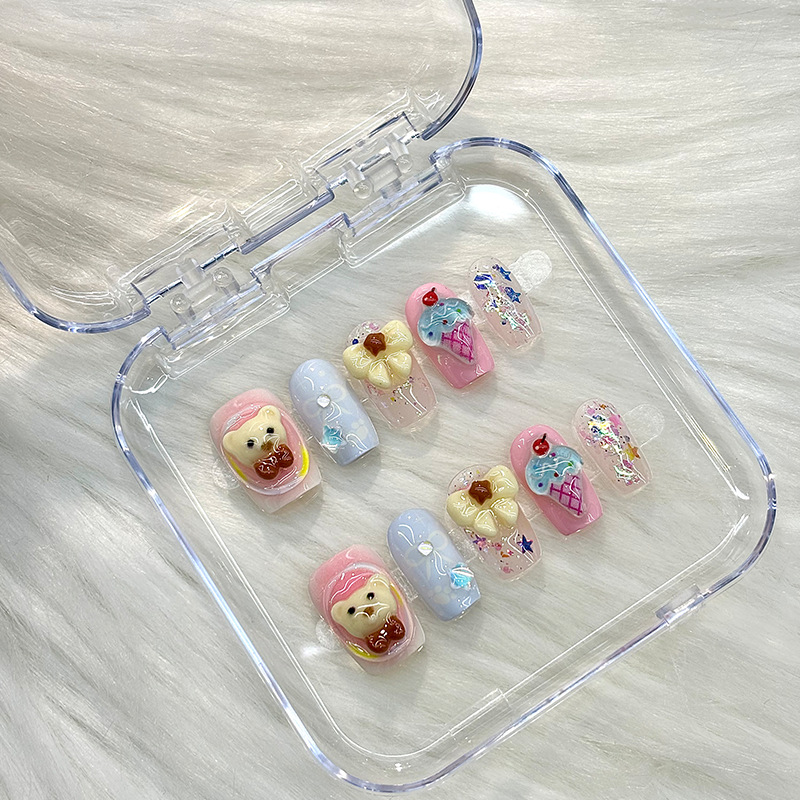 高定甜美可爱手工穿戴甲立体蝴蝶结美甲甲片贴纸短甲工厂现货批发