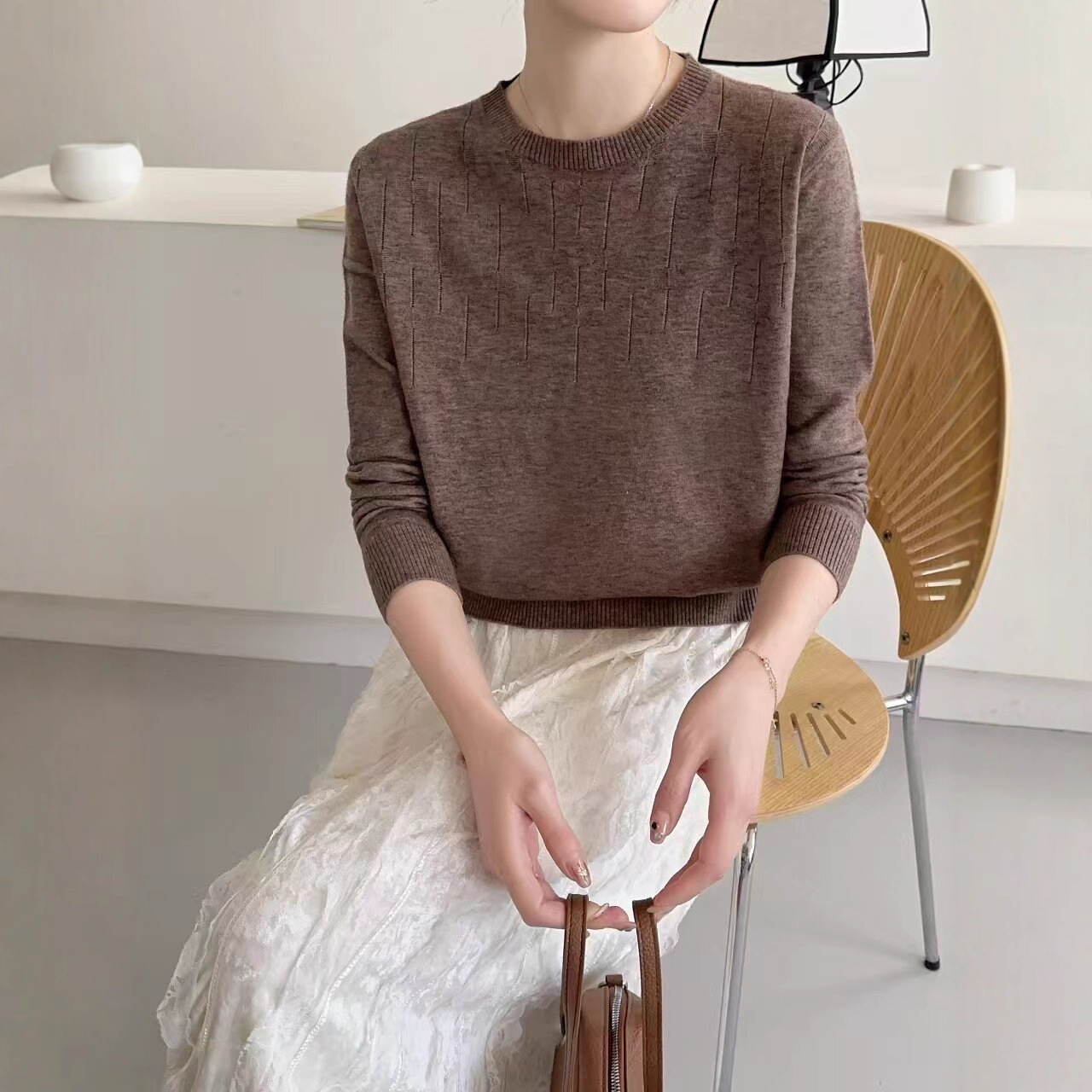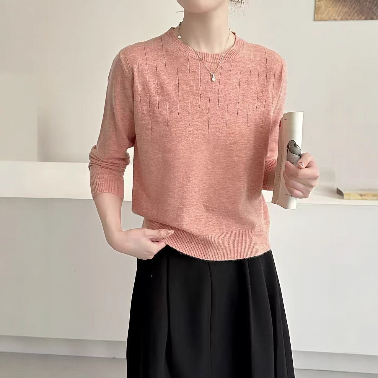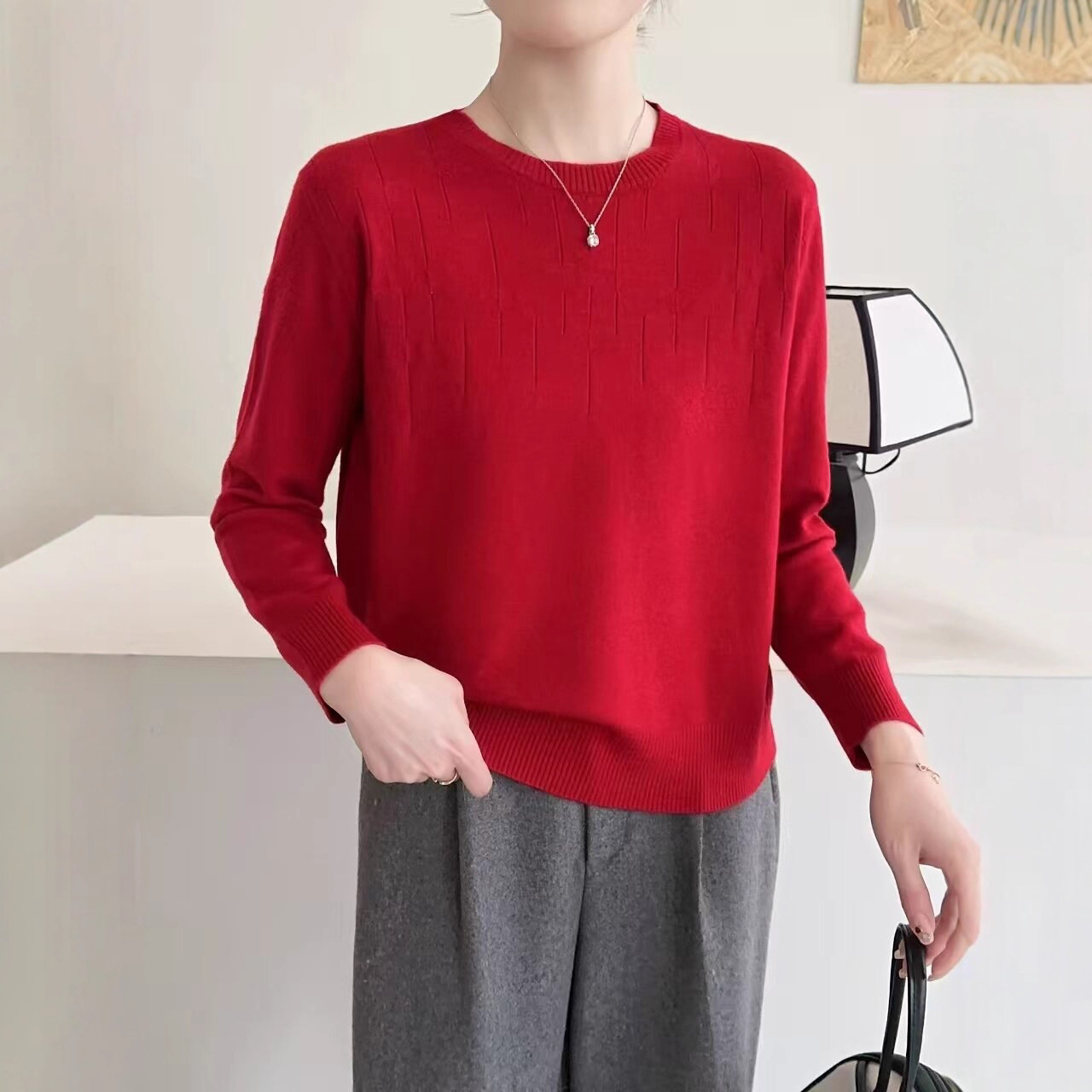 低圆领毛衣女新款妈妈内搭打底衫女士混纺毛衣秋冬季羊毛衫针织衫