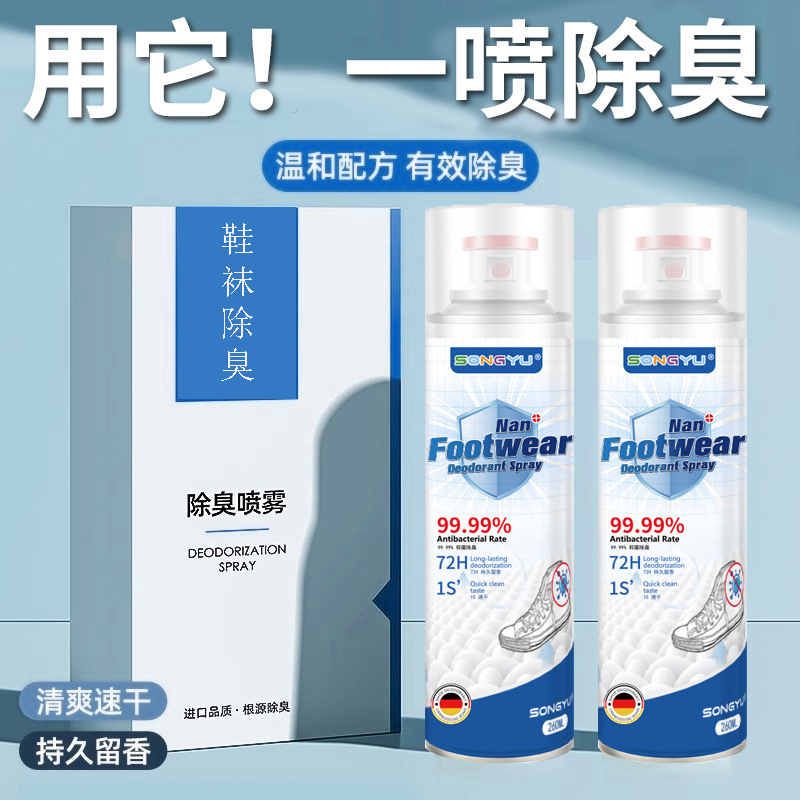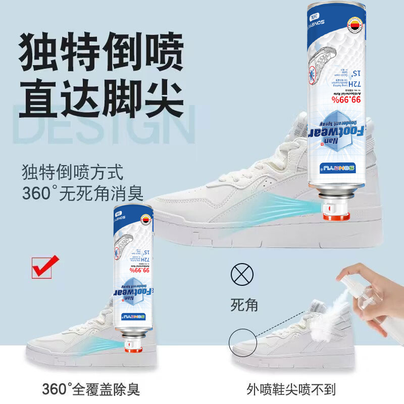 鞋袜除臭喷雾防臭抑菌喷雾剂鞋内异味脚汗干爽剂银离子鞋子除臭剂