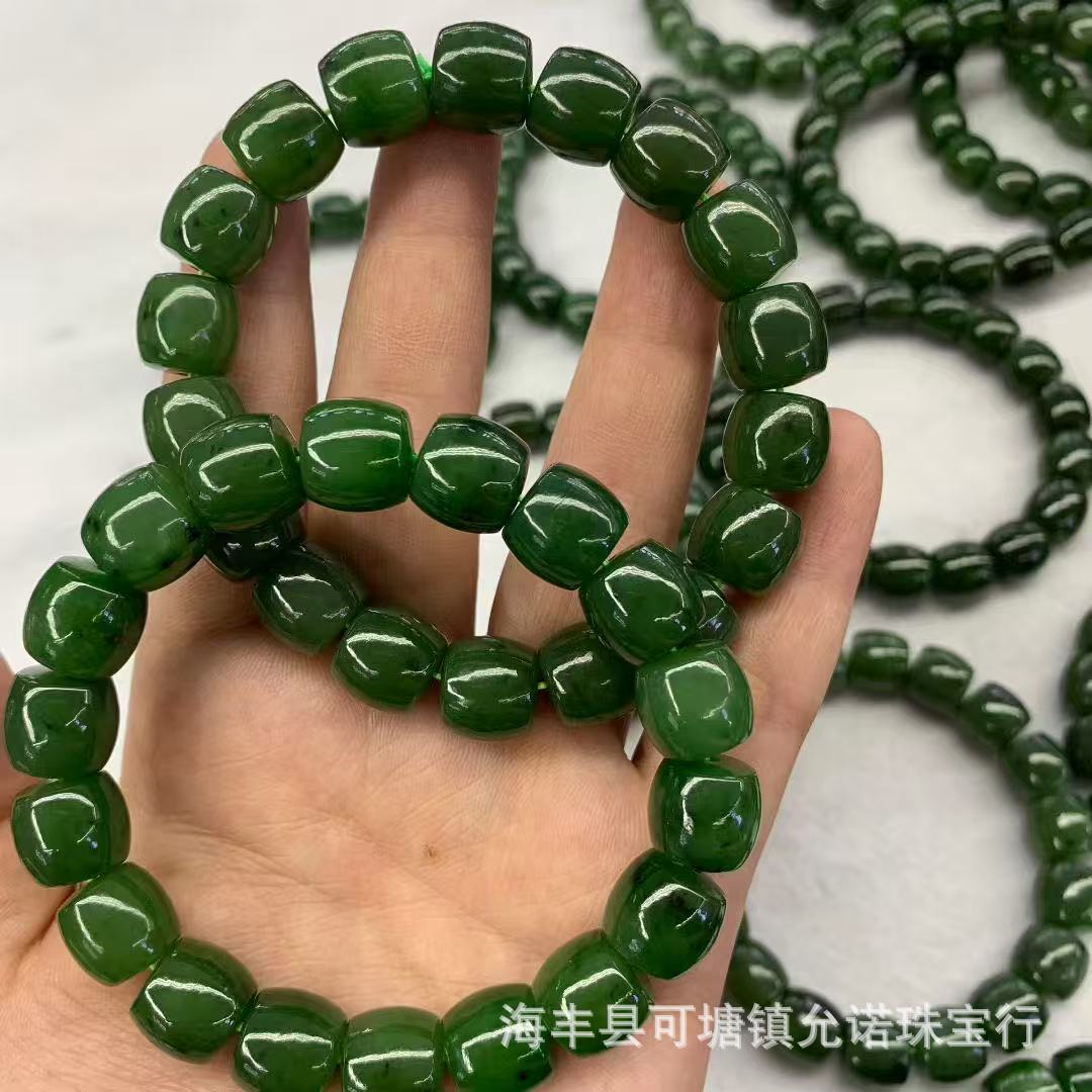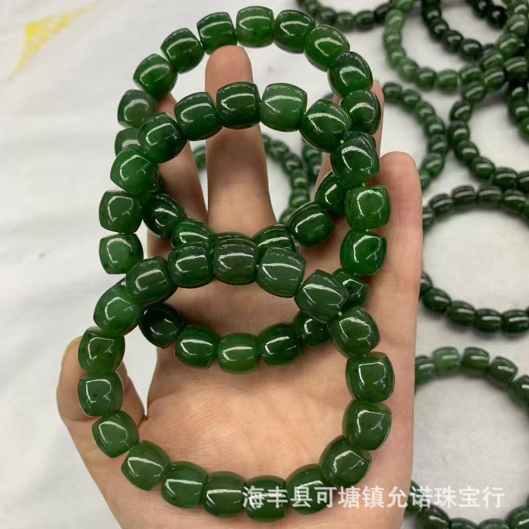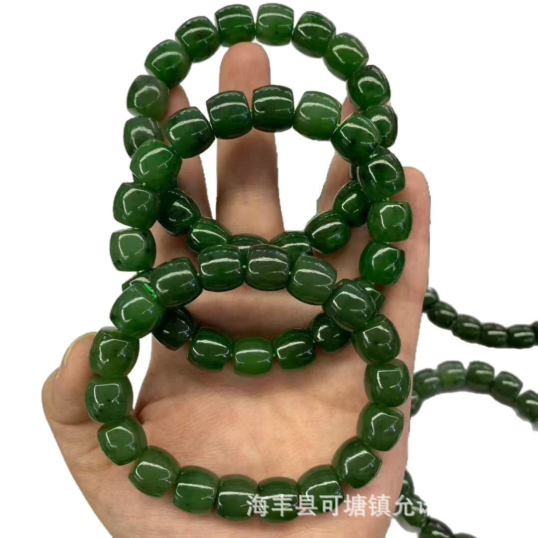 跑量批发 原矿和田玉 俄料和田碧玉约11×12m直切面大手串 带黑点