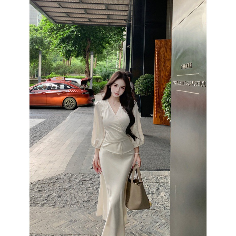 2025新款纯欲风套装性感气质长袖衬衫女秋季高腰显瘦半身裙两件套