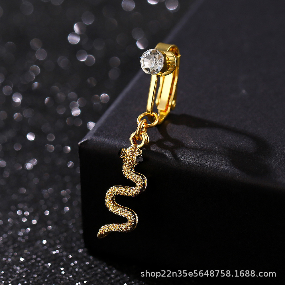 跨境热销免穿孔蛇形肚脐夹小蛇系列脐钉饰品镶锆石批发欧美时尚