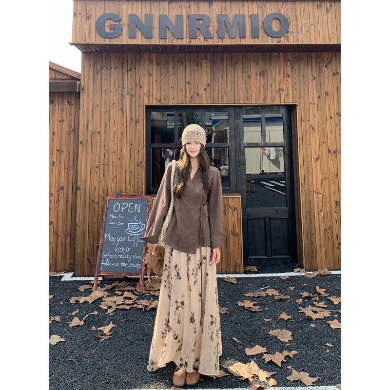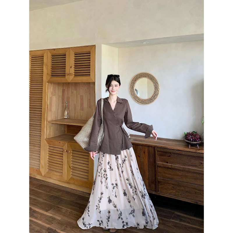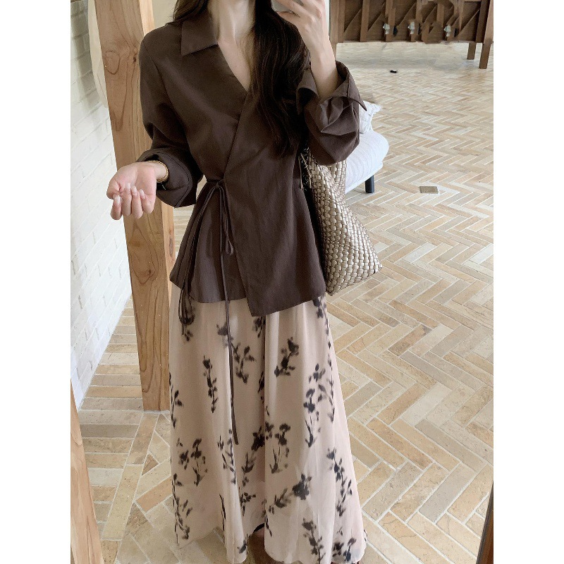 2025新款秋装法式风设计感百搭收腰长袖衬衫高腰半身裙时尚套装女