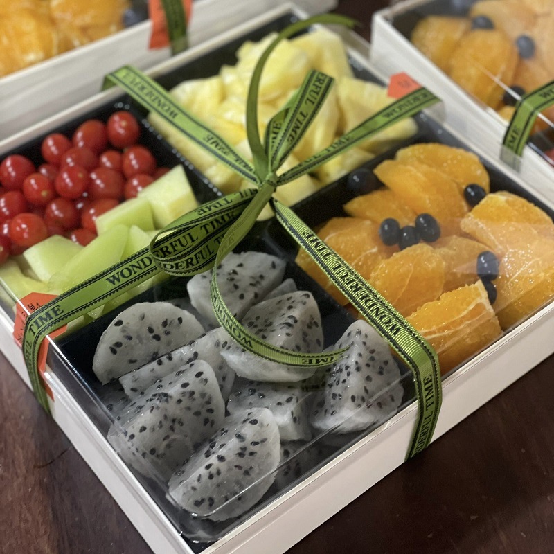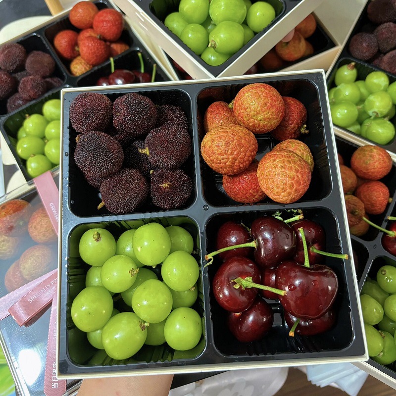 四分格四拼水果盒子草莓鲜果果切包装盒方形一次性透明纸塑打包盒