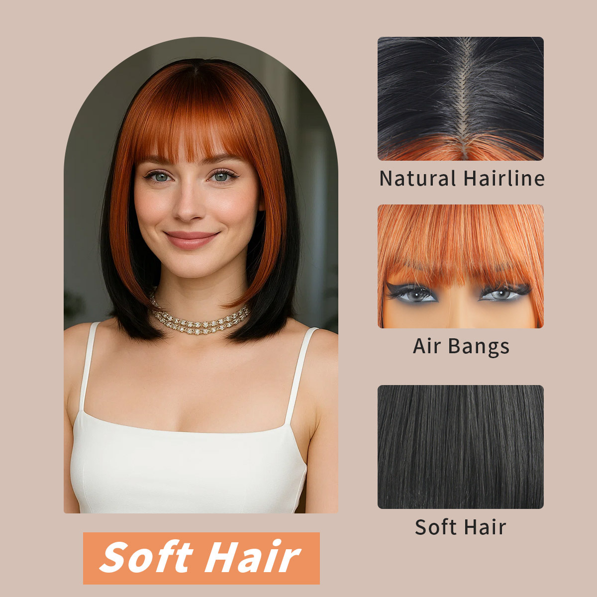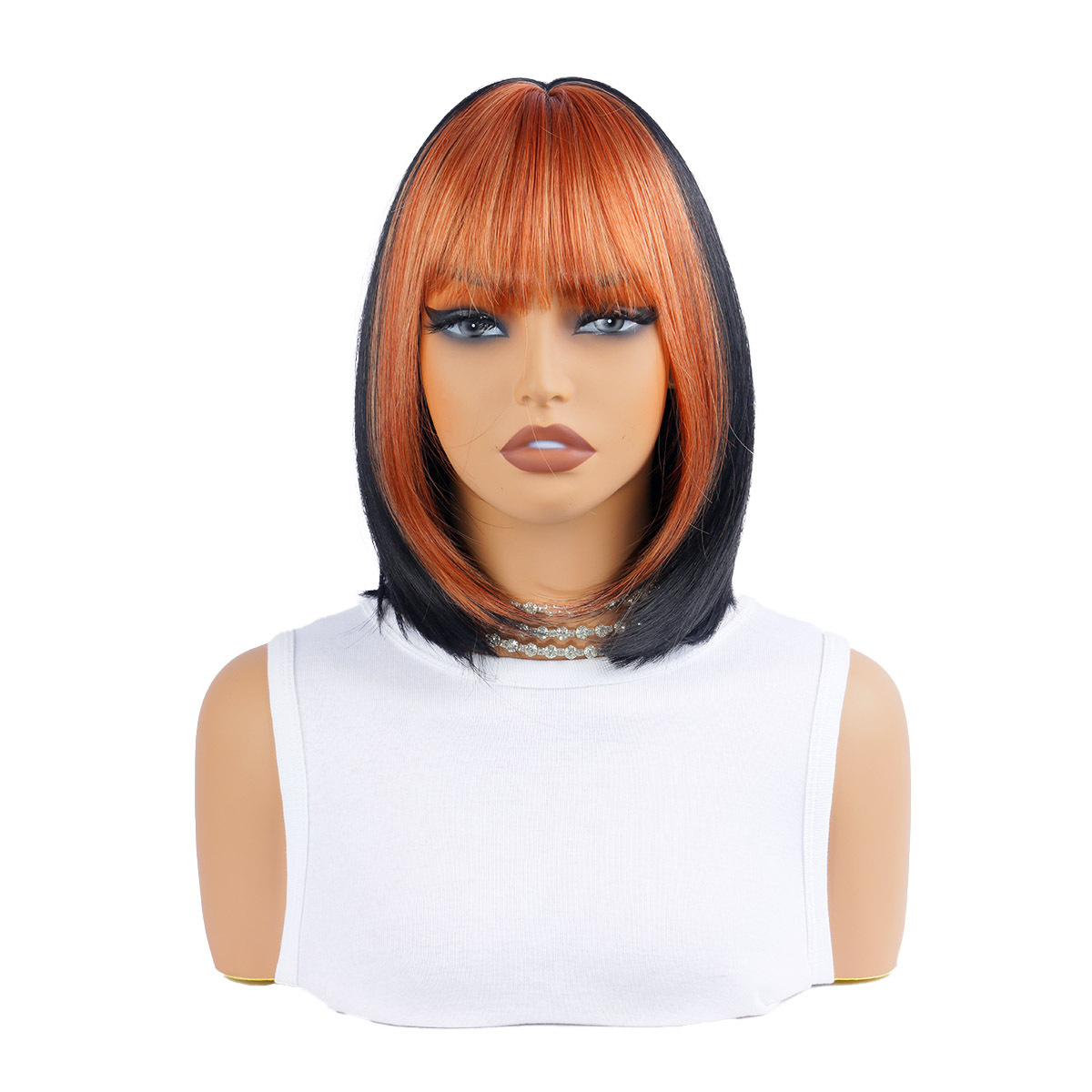 跨境新款鲍勃假发女bobo齐刘海短直发波波棕黑化纤全头套厂家批发