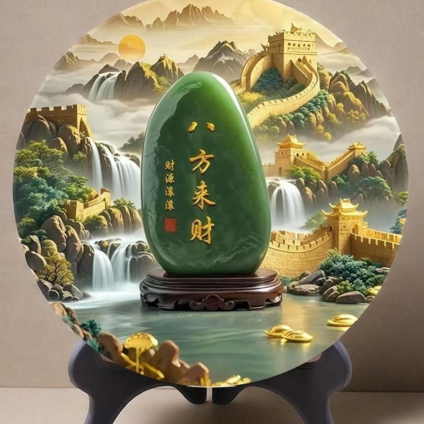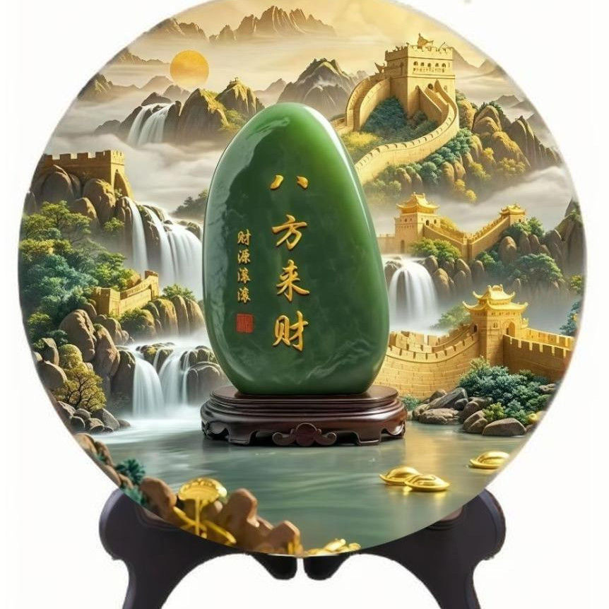 八方来财玉石相框招财摆件家用旺宅转运桌面摆台居家玄关摆台批发