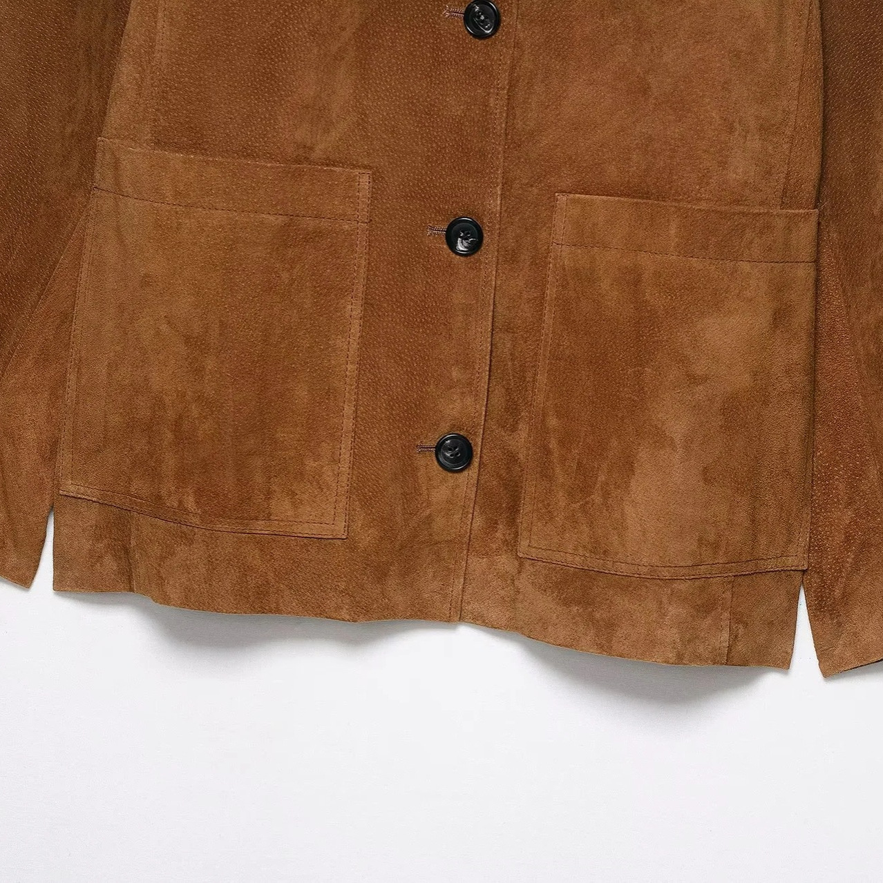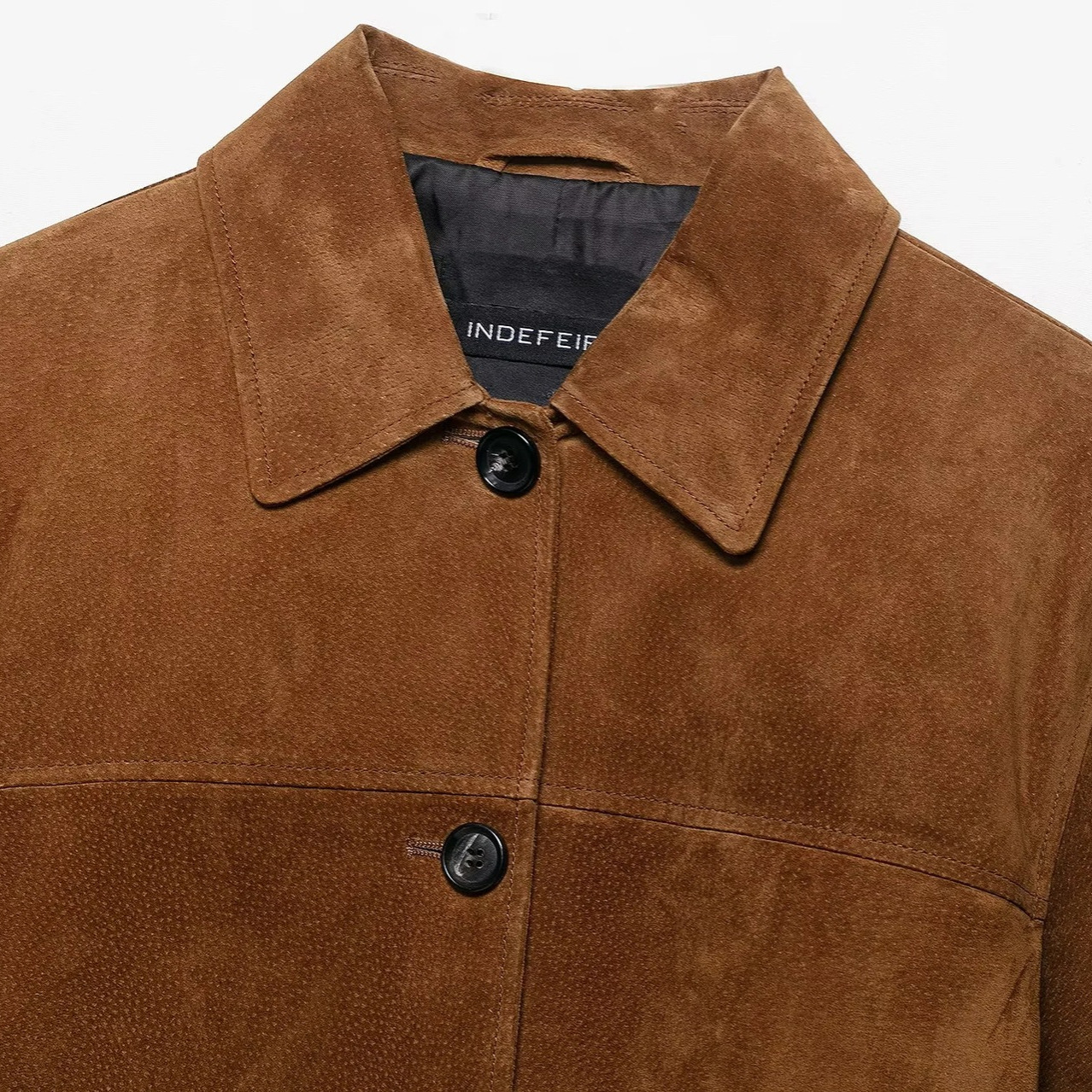 速卖通跨境2025欧美风秋季新款时尚复古设计休闲反绒皮夹克外套女