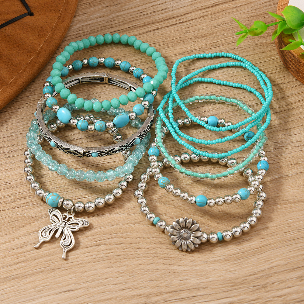 11pc跨境手链欧美波西米亚海滩风蓝金串珠海龟流苏挂件Tiktok爆款
