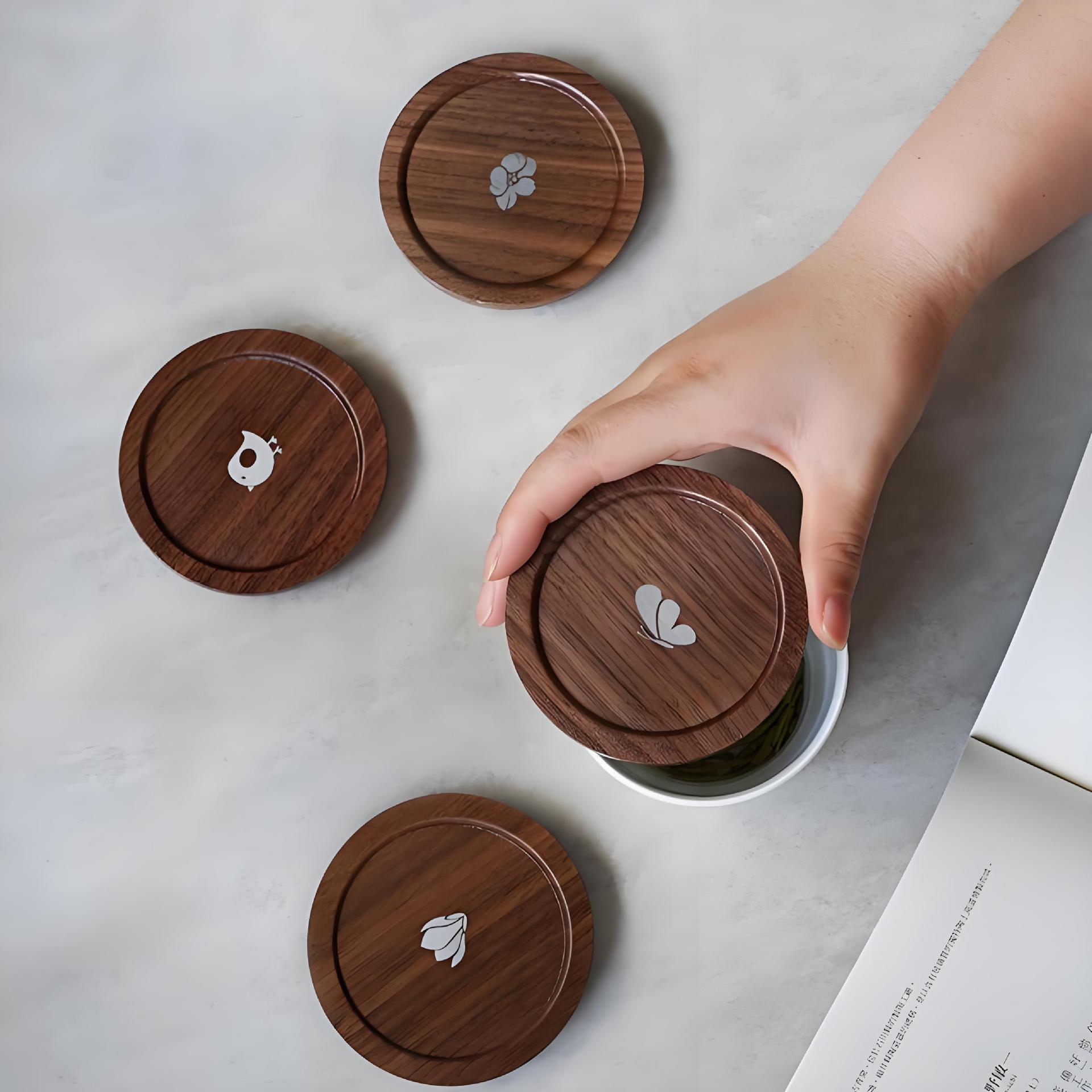 现货供应 各种规格松木蜡烛杯盖硅胶圈木盖陶瓷罐马克杯木盖