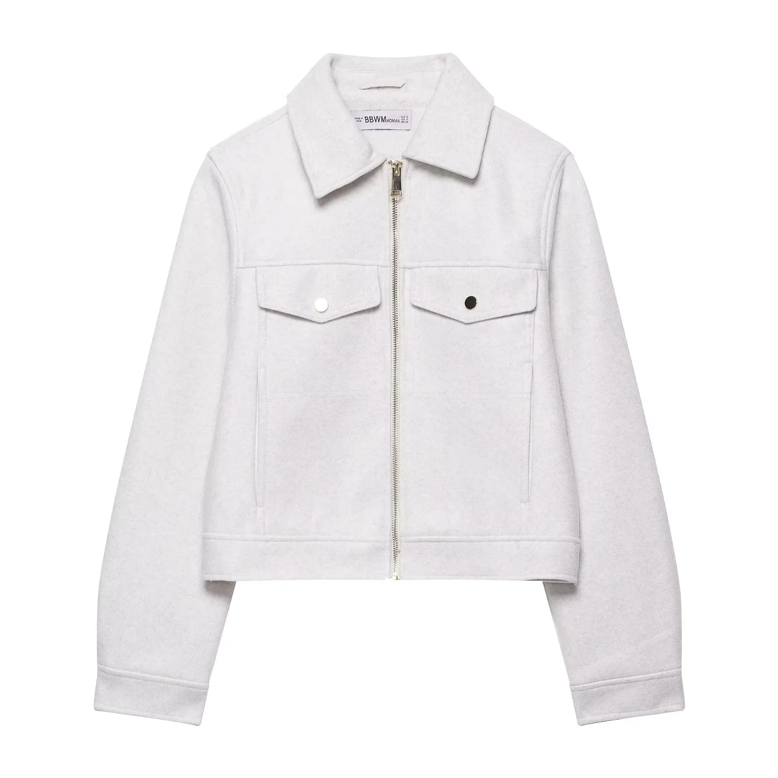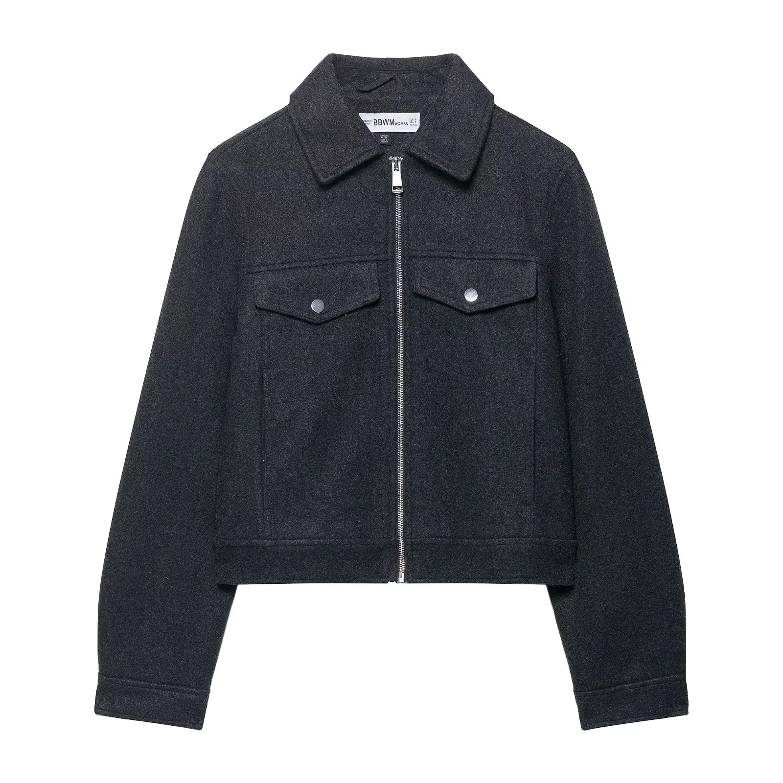 速卖通跨境2025秋季新款欧美风简约休闲百搭翻领软质拉链夹克外套