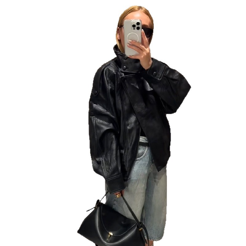 亚马逊跨境2025秋季新款外套 时尚潮流纯色机车风皮衣夹克