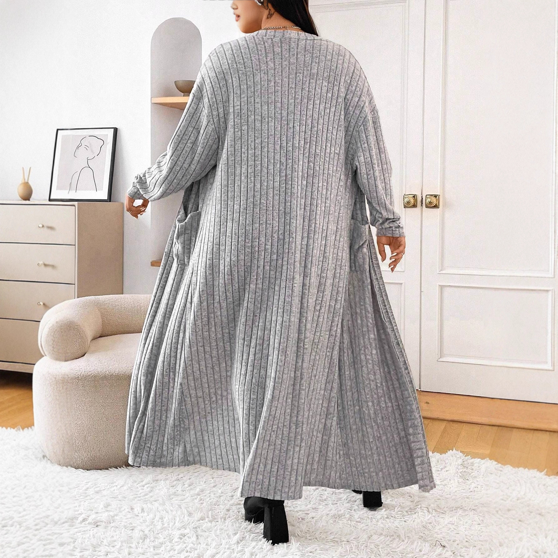 2025秋冬欧美跨境亚马逊新款大码休闲长款 长袖开衫 针织衫外套女