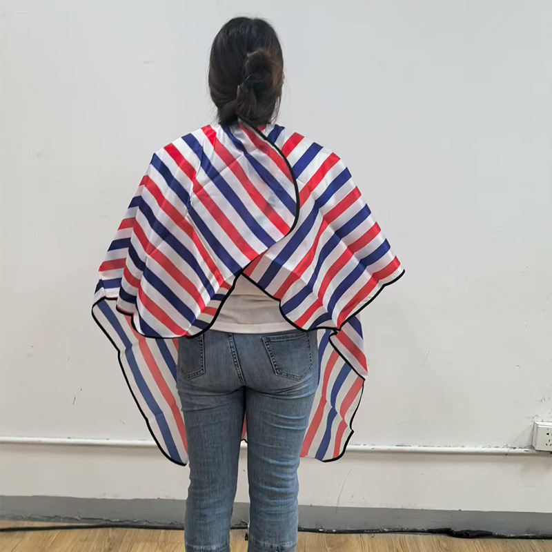 出口围布复古条纹美发围布成人不沾发透气焗油工具外贸款理发围布