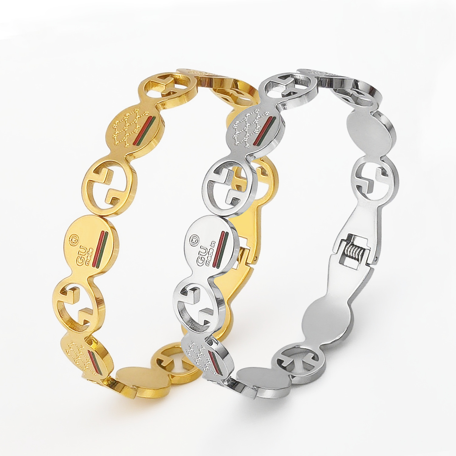 欧美跨境古家g家钛钢手镯不掉色饰品珐琅滴油镶钻手环手饰首饰