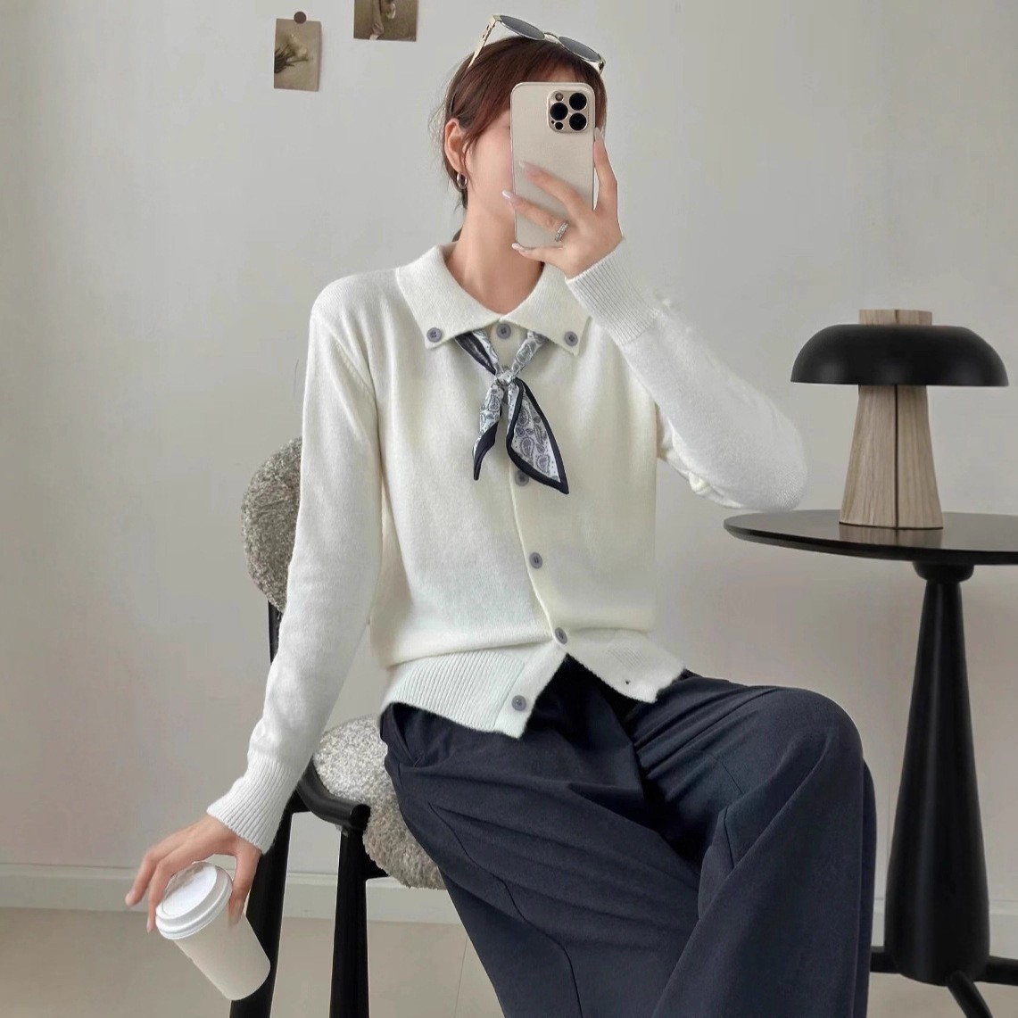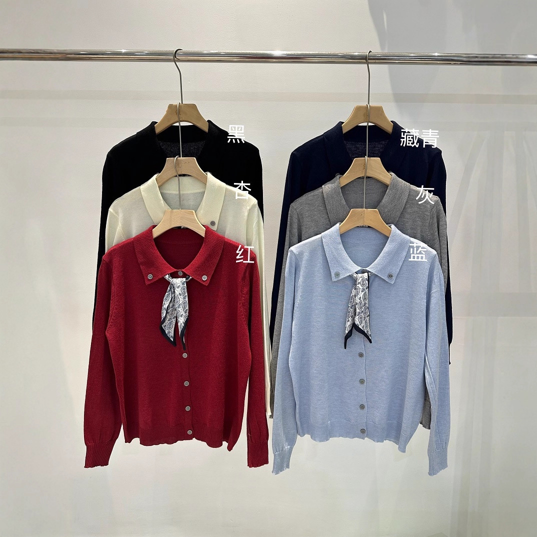 亚马逊跨境韩系新款高级感气质拼接春季圆领针织开衫宽松上衣女