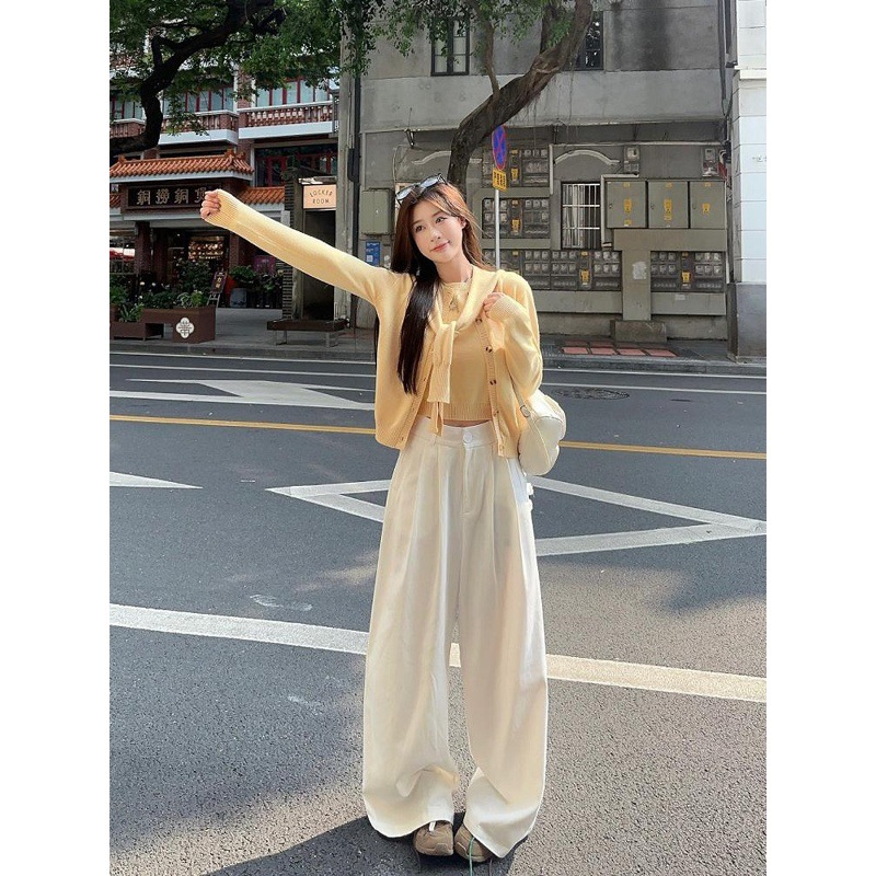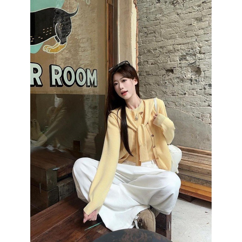 2025新款秋装慵懒风百搭长袖开衫短袖T恤阔腿牛仔裤时尚套装女潮