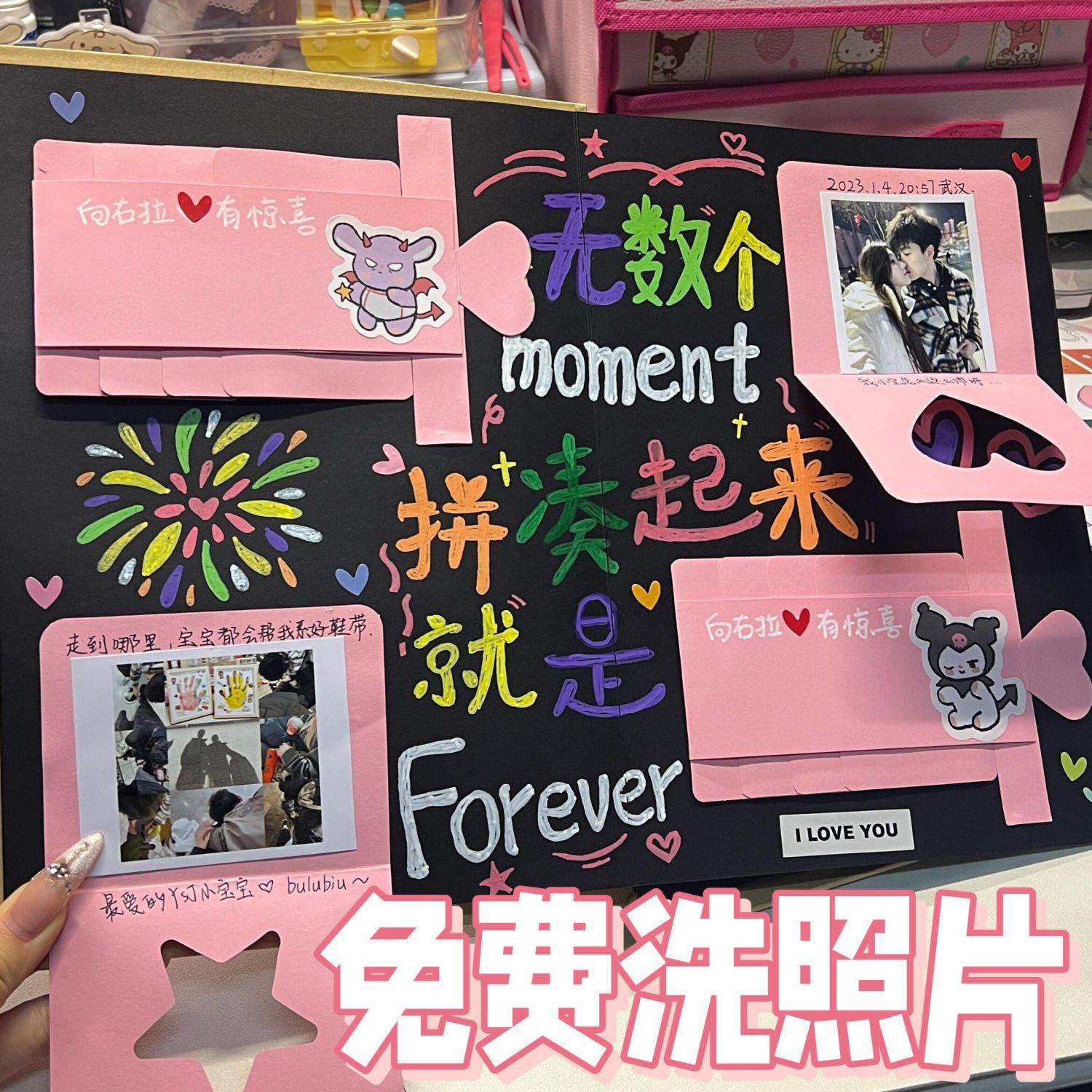 diy立体机关卡风琴本折叠书相册本纪念册情侣款生日手绘创意礼物