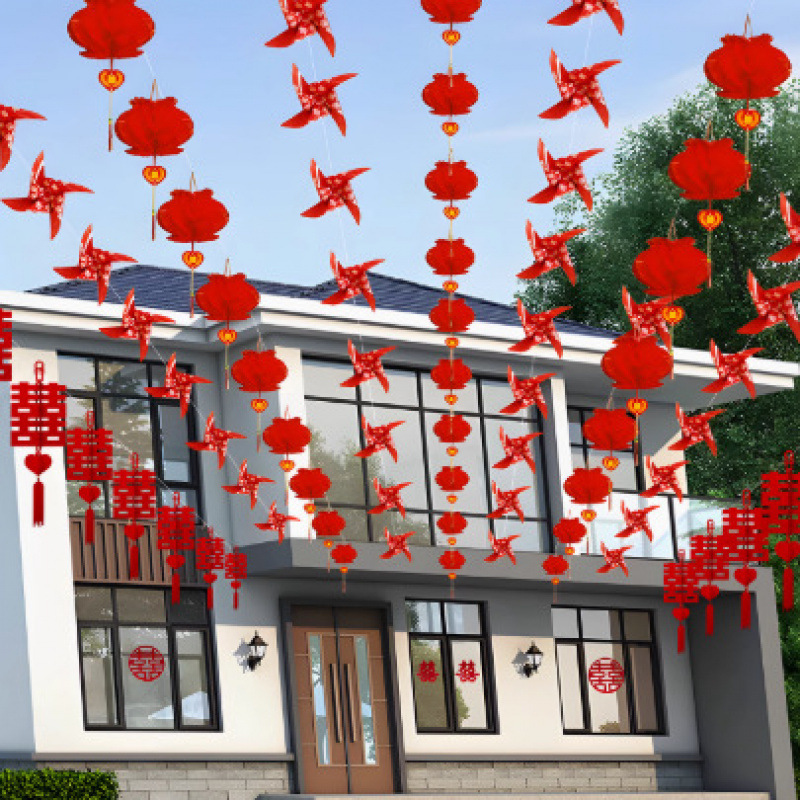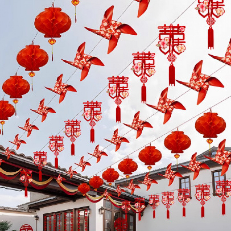 颜色 | 40个风车+16个彩印喜挂件+20个灯笼+100米鱼线+定位夹 | 颜色 | 80个风车+40个圆喜挂件+40个灯笼+200米鱼线+定位夹 |