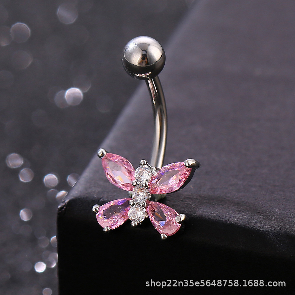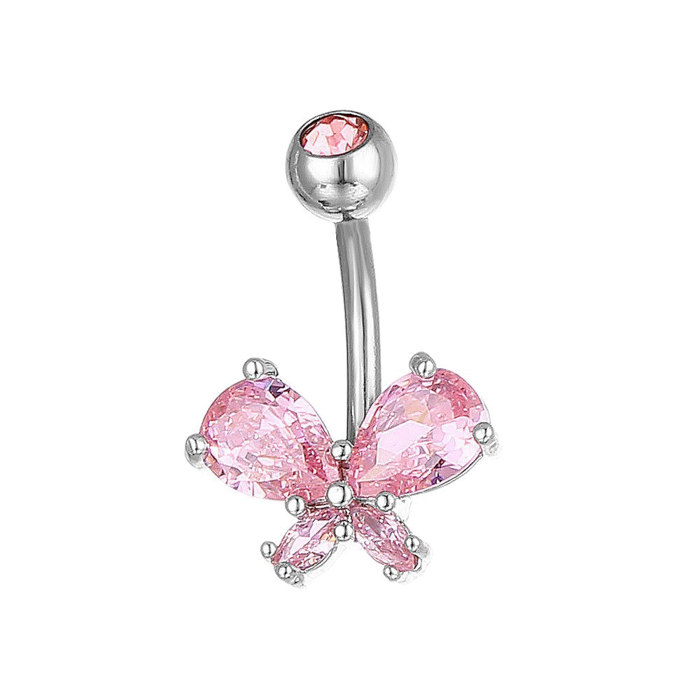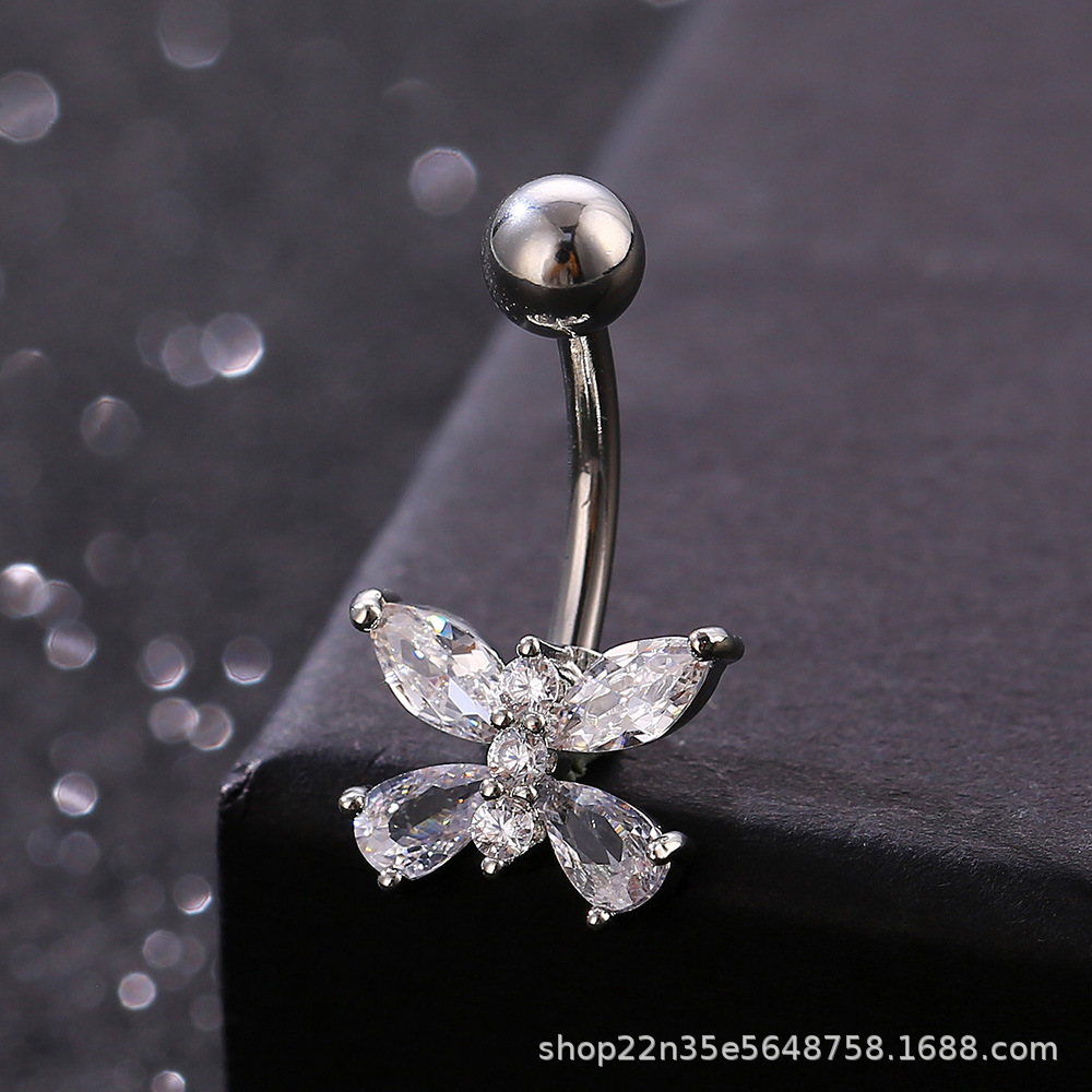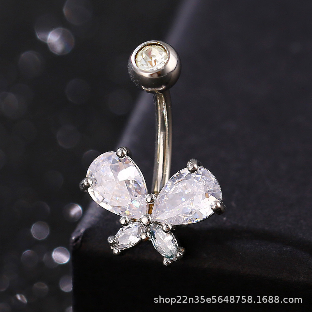 跨境穿刺饰品欧美蝴蝶镶锆石脐钉不锈钢氧化锆肚脐环节日礼物