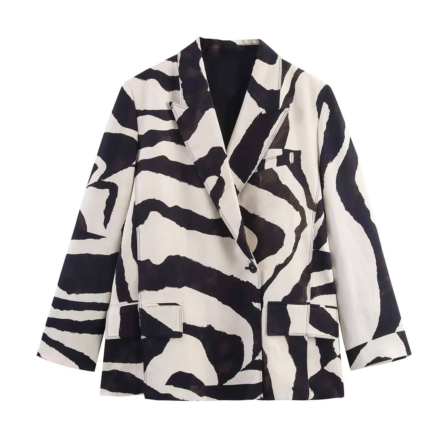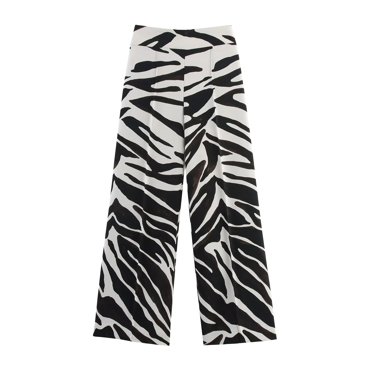 跨境欧美风秋季新款时尚动物纹印花西装外套+阔腿直筒长裤套装女