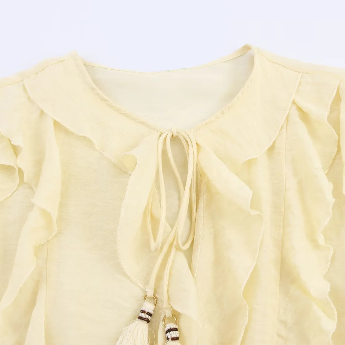 速卖通欧美风2025秋季新款浪漫风格温柔百搭叠层装饰长袖衬衫上衣