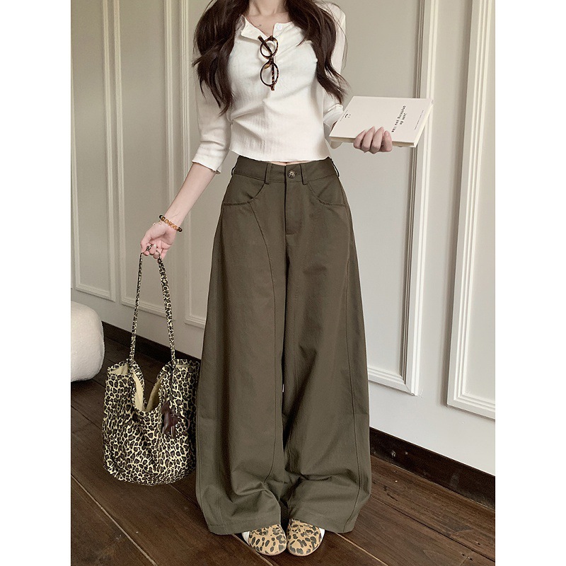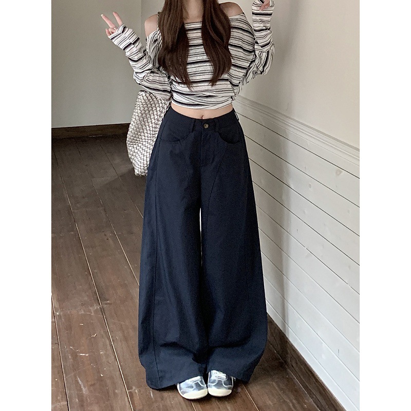 2025新款慵懒风纯色宽松垂感休闲裤女装秋季高腰显瘦阔腿裤拖地裤