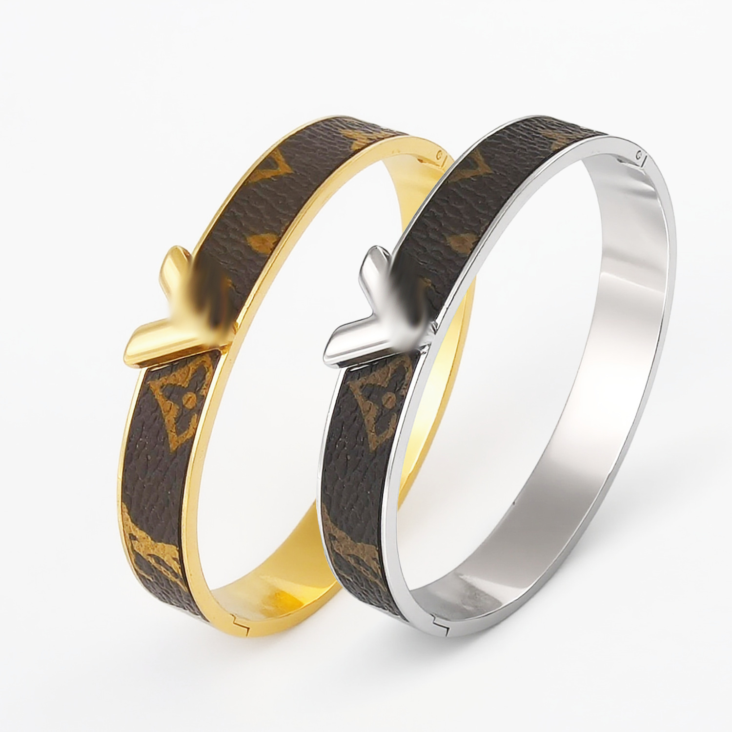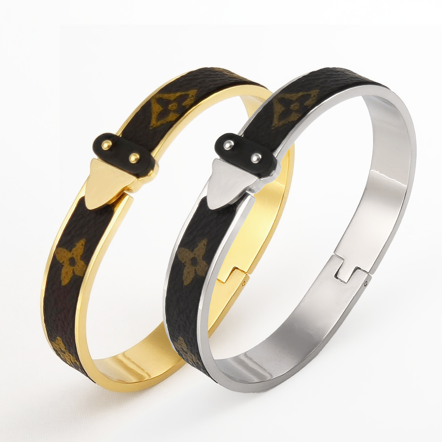 欧美跨境驴家老花皮革贴皮钛钢手镯不掉色时尚饰品手环手饰首饰