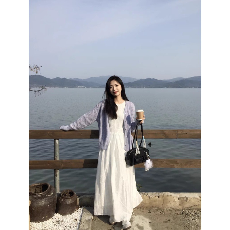 2025新款温柔风镂空麻花长袖针织毛衣女秋季内搭背心连衣裙两件套