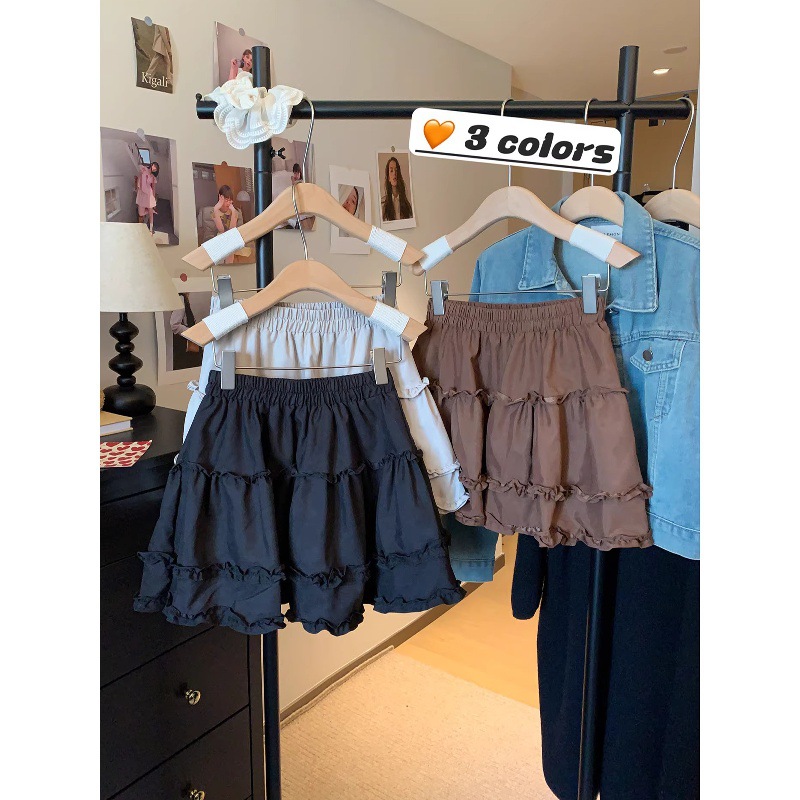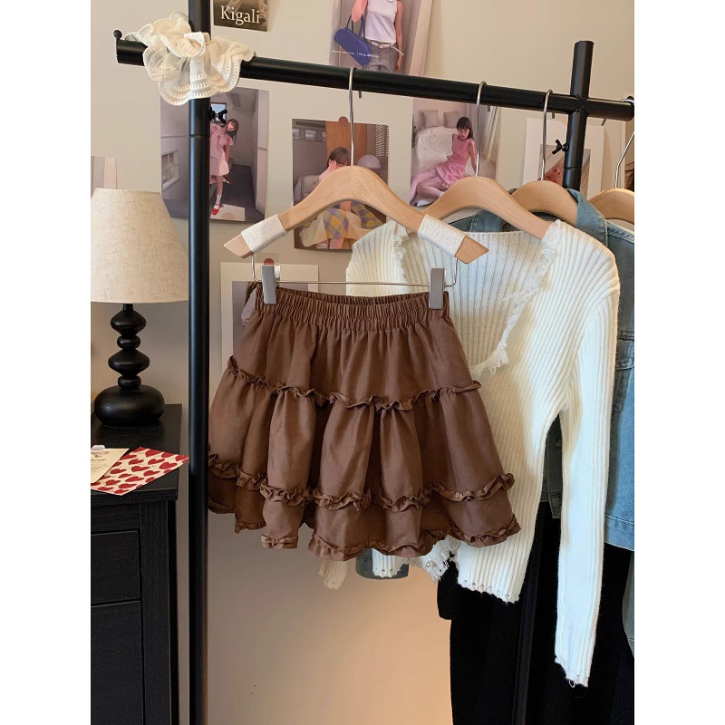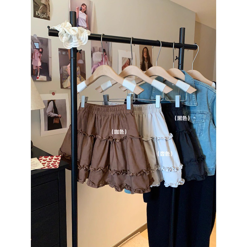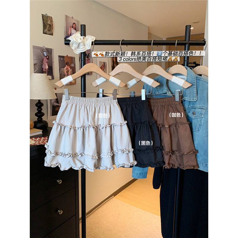 2025新款设计感松紧腰木耳边半身裙女秋季别致百搭显瘦蛋糕裙短裙