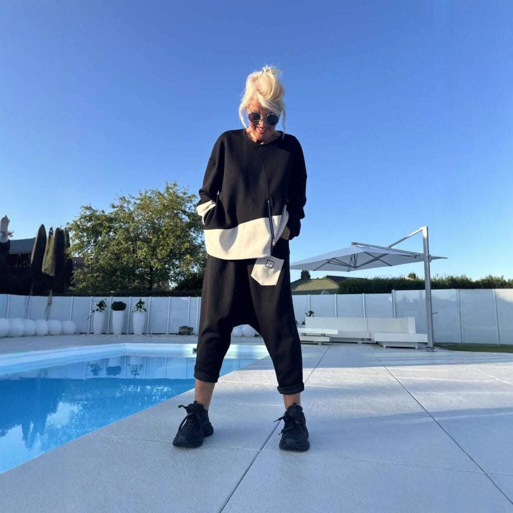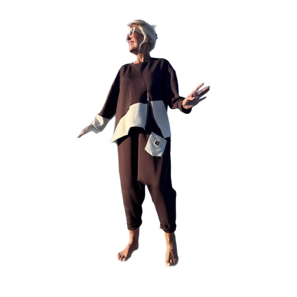 欧美跨境2025亚马逊秋冬新款拼色不规则设计感休闲运动女装套装