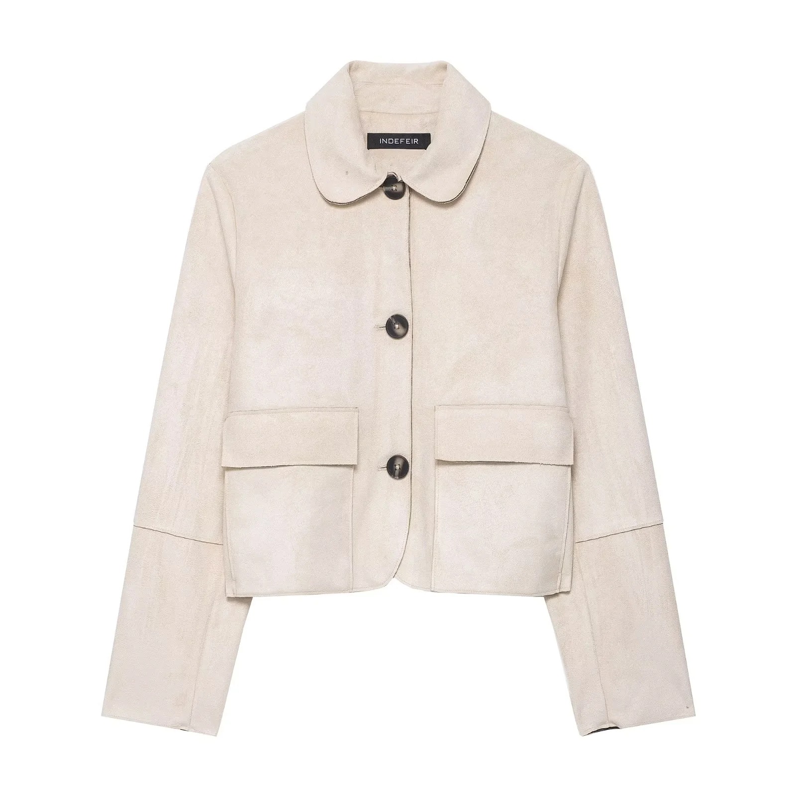 跨境欧美风2025秋季新款翻领口袋反绒皮效果休闲百搭短款夹克外套