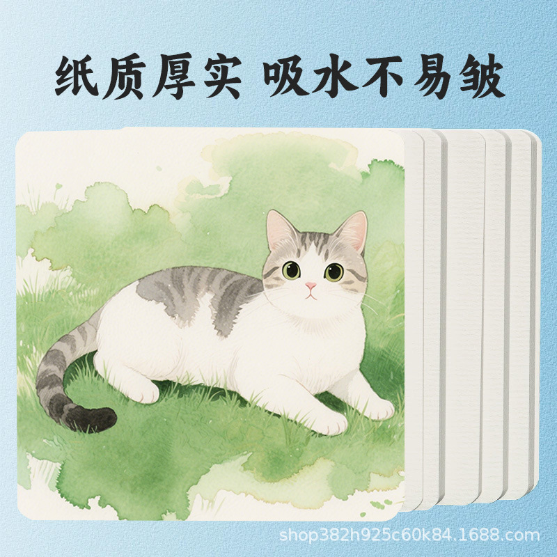水彩纸明信片300g加厚美术绘画正方形画纸卡片木浆书签卡片白卡纸