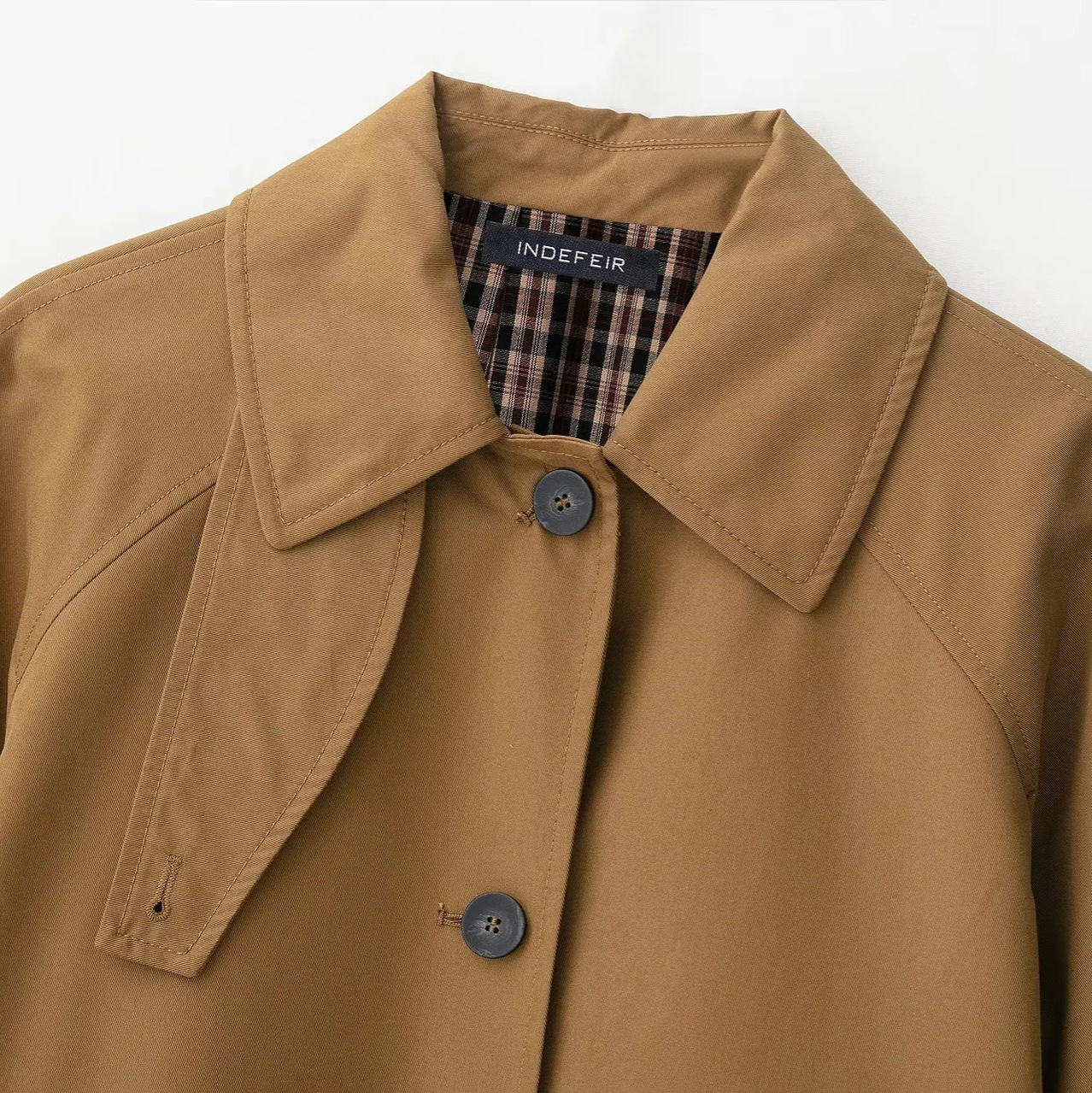 亚马逊2025秋季新款欧美女装英伦风复古休闲纯色中长款风衣外套
