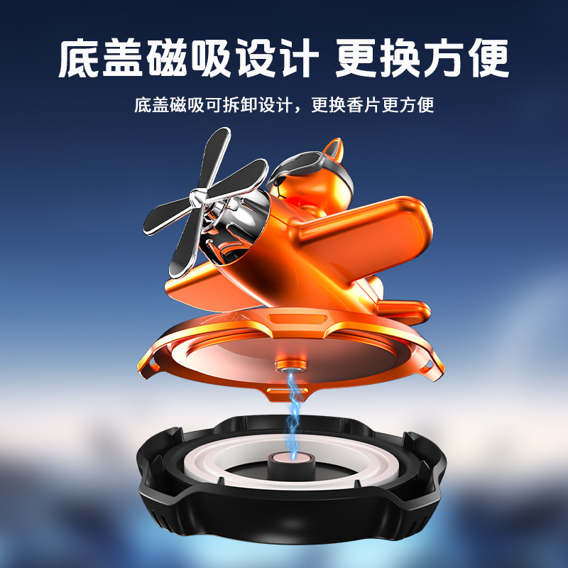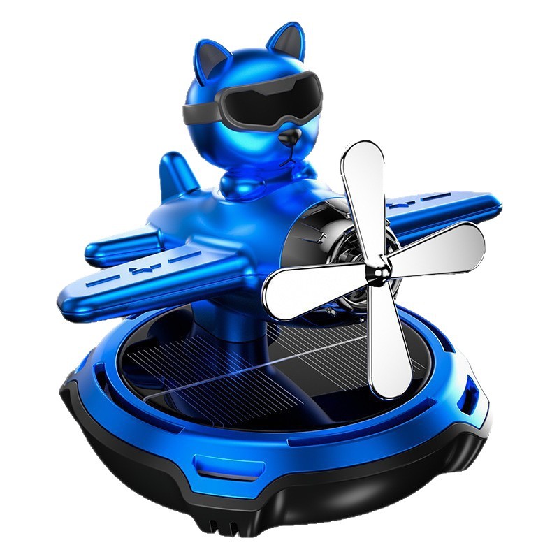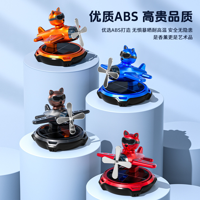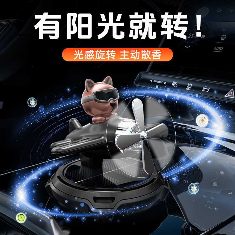跨境专供车载太阳能飞机车用香薰尖耳狗飞行员汽车饰品创意车内