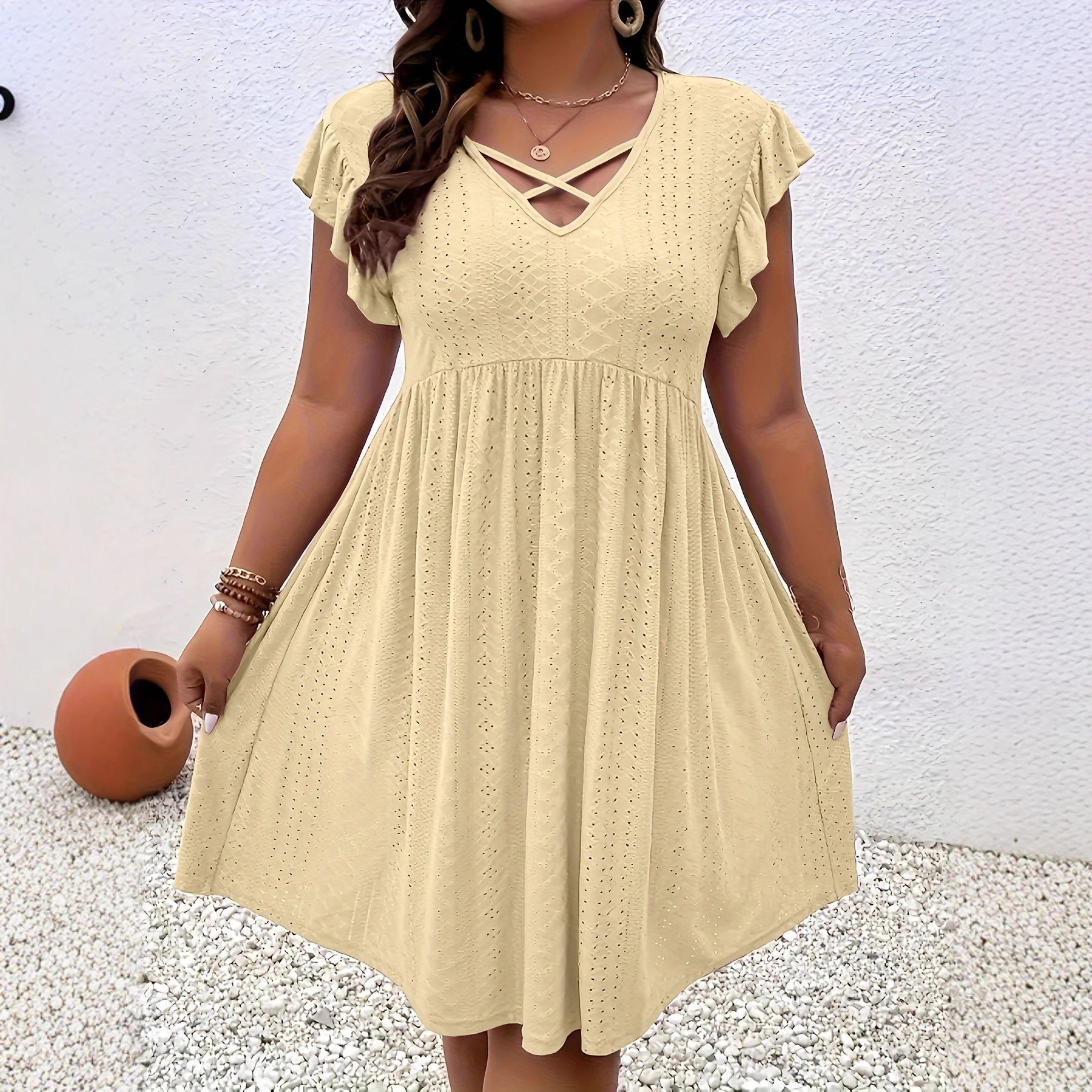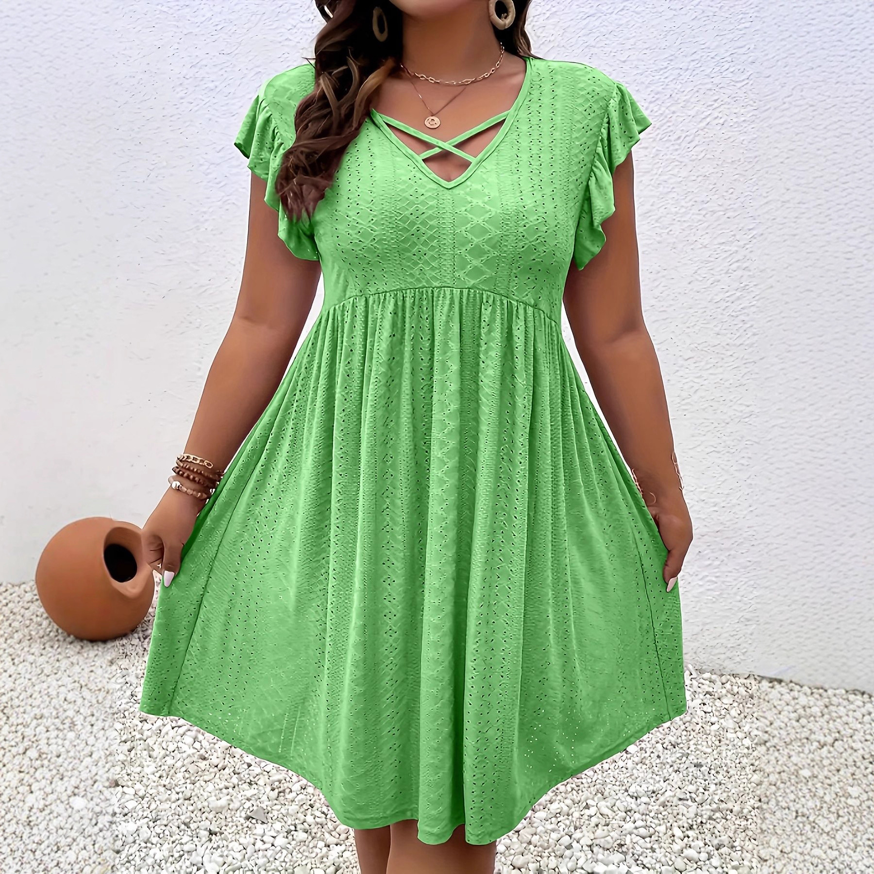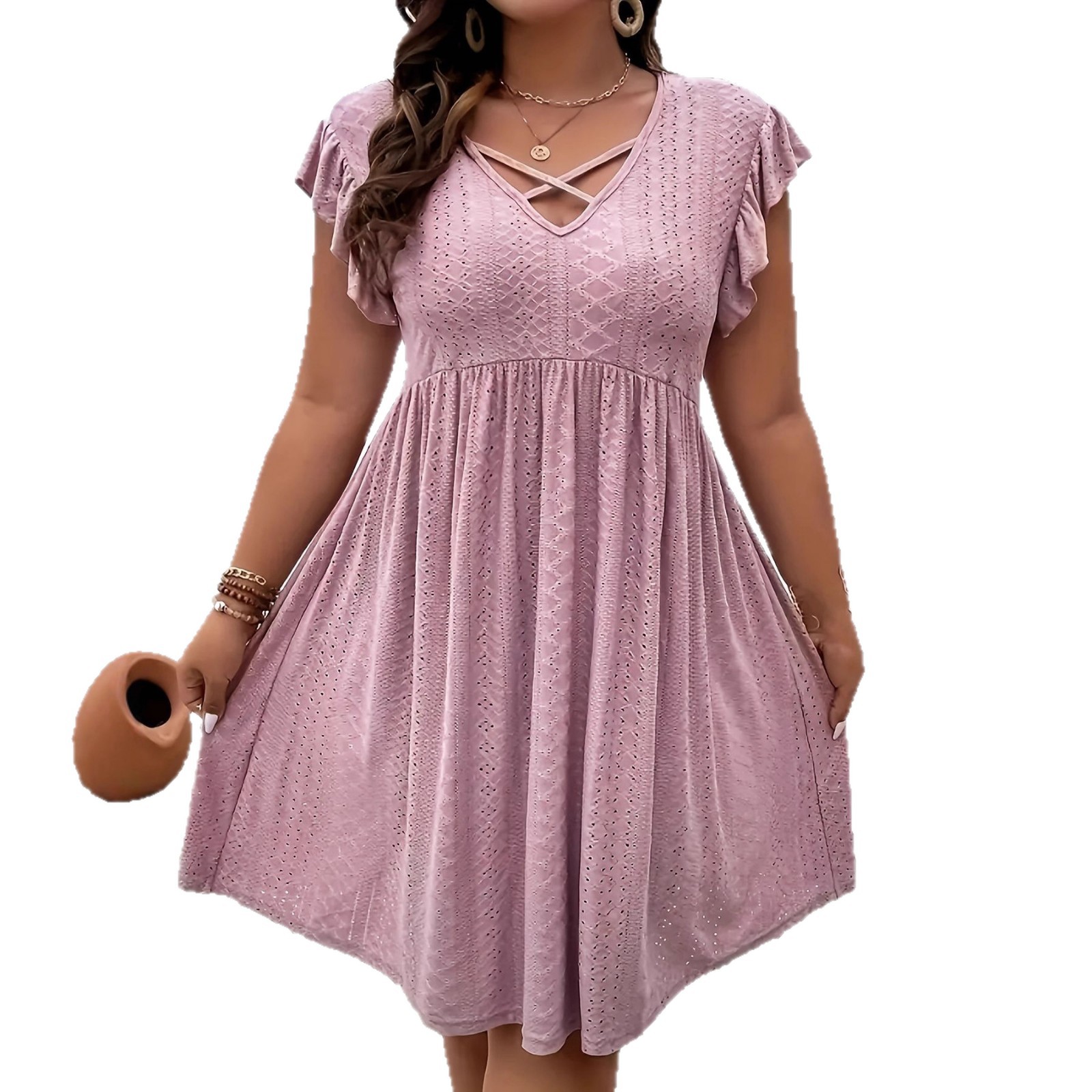 2025欧美跨境 亚马逊春季新款女装V领镂空短袖罩衫连衣裙