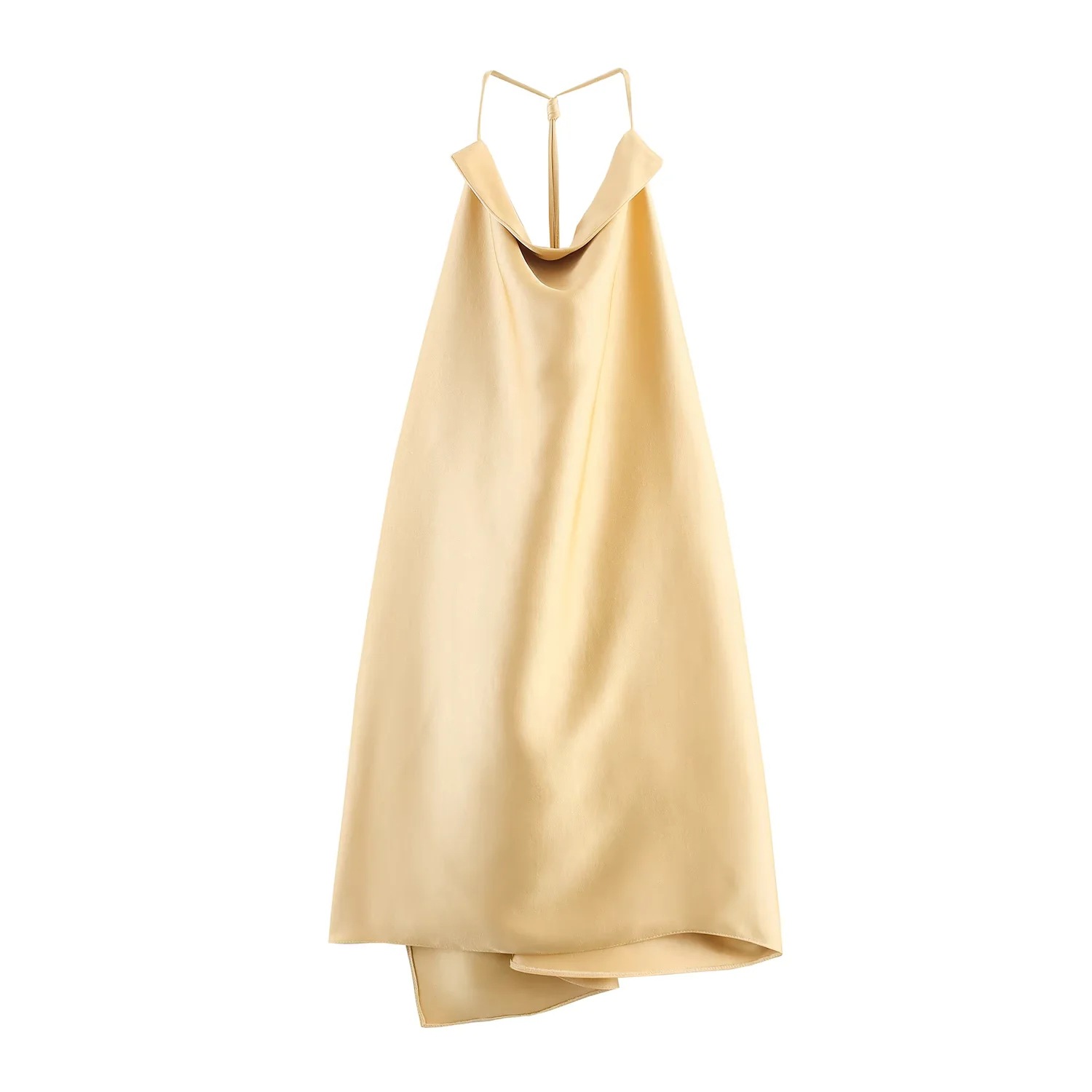 2025秋季新款欧美风丝缎质感露背挂脖领上衣+蓬蓬裤休闲长裤套装