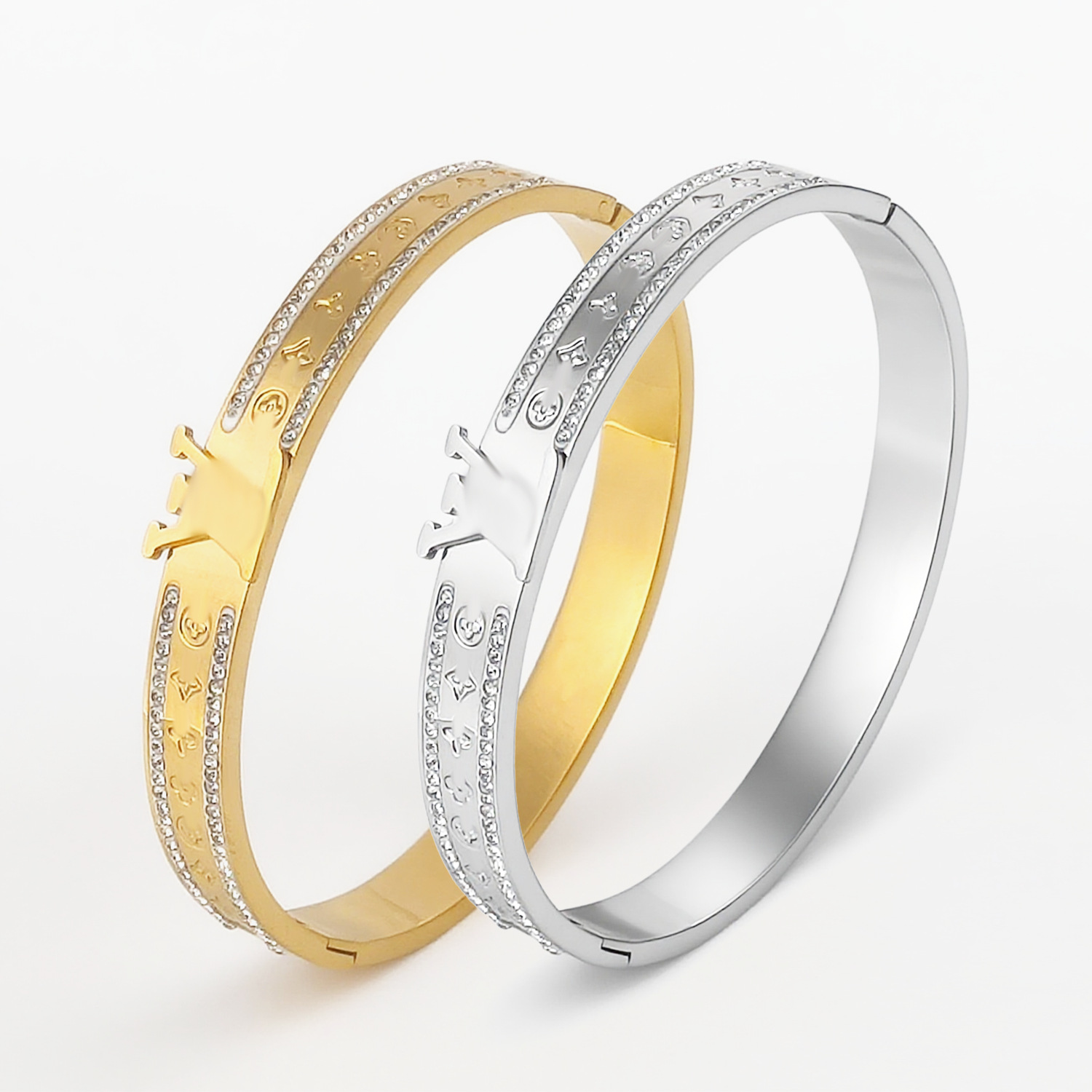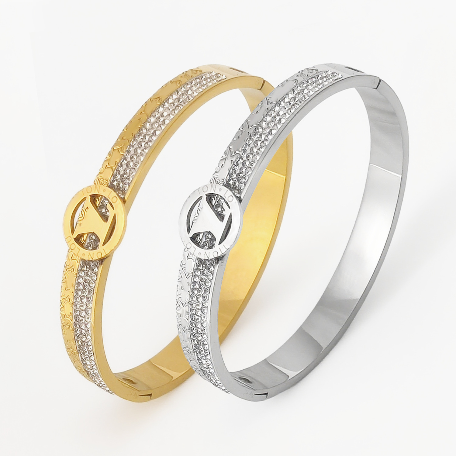 欧美跨境驴家钛钢手镯不掉色饰品巴钻镶钻时尚手环手饰首饰配件