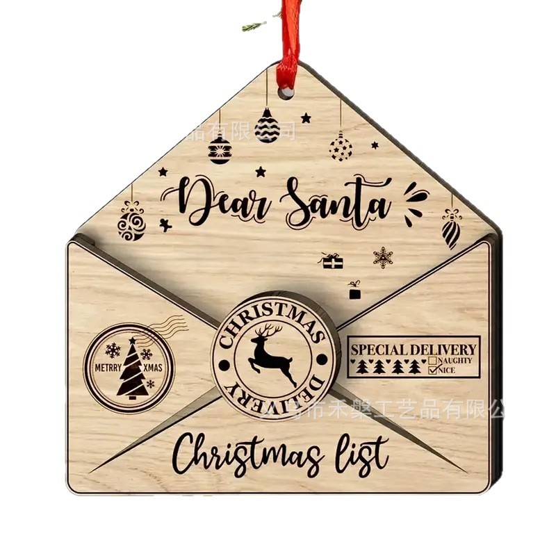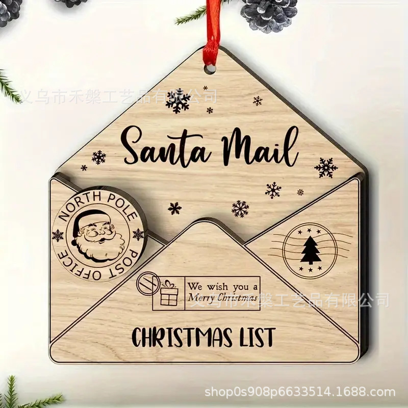 跨境新品3D立体圣诞老人信封装饰圣诞节礼物木质工艺品圣诞树挂件
