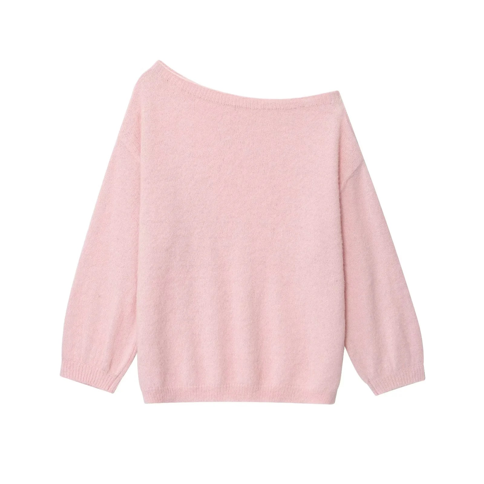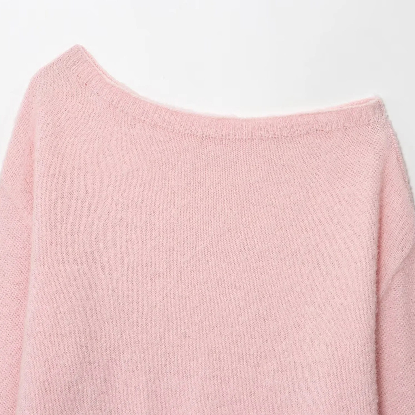 2025秋季新款欧美风女装法式慵懒温柔风一字领软糯针织衫宽松毛衣