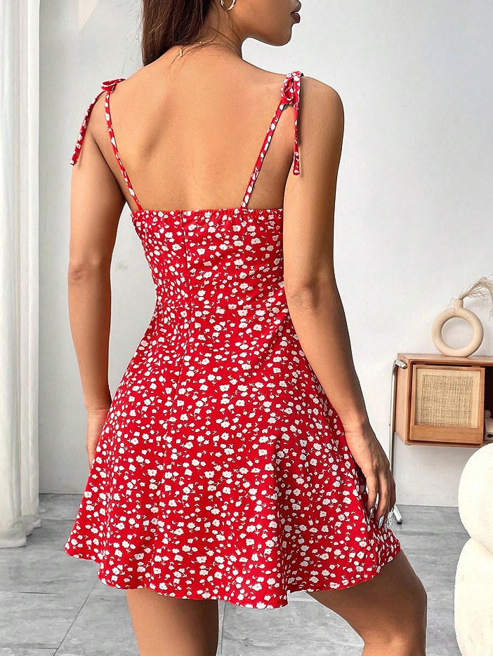 2025年跨境亚马逊wish爆款夏季法式 新款碎花吊带连衣裙短裙