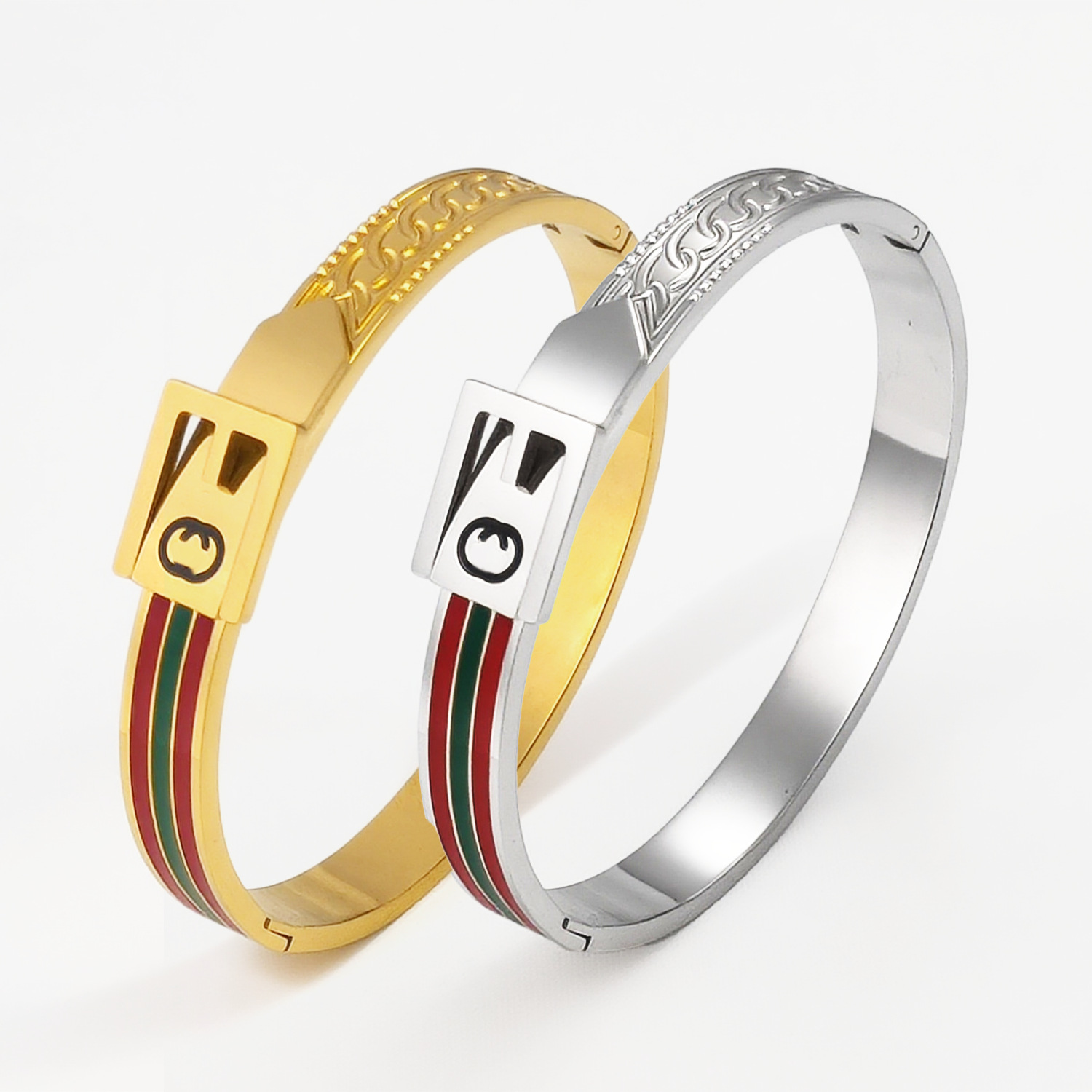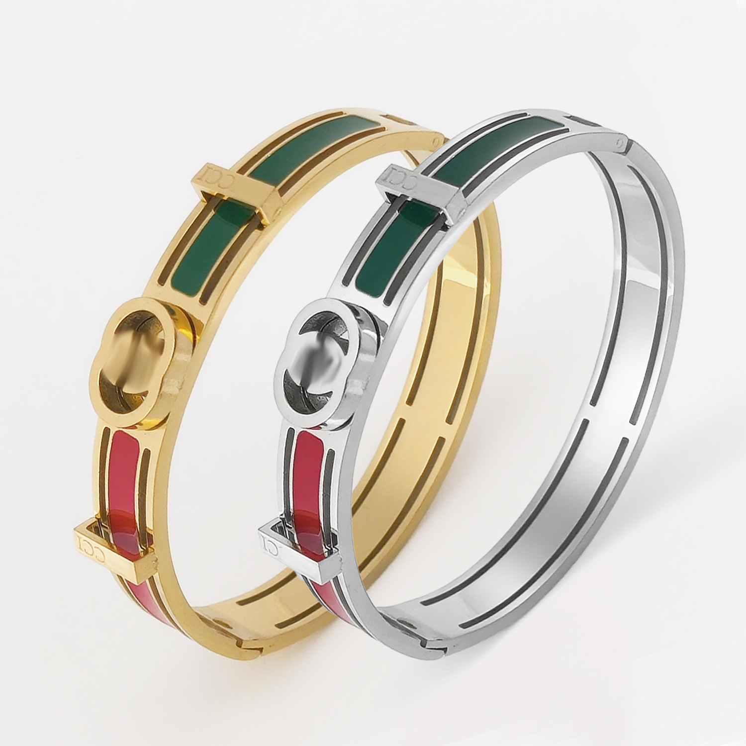 欧美跨境G家古家双g钛钢手镯不掉色饰品珐琅滴油镶钻手环手饰