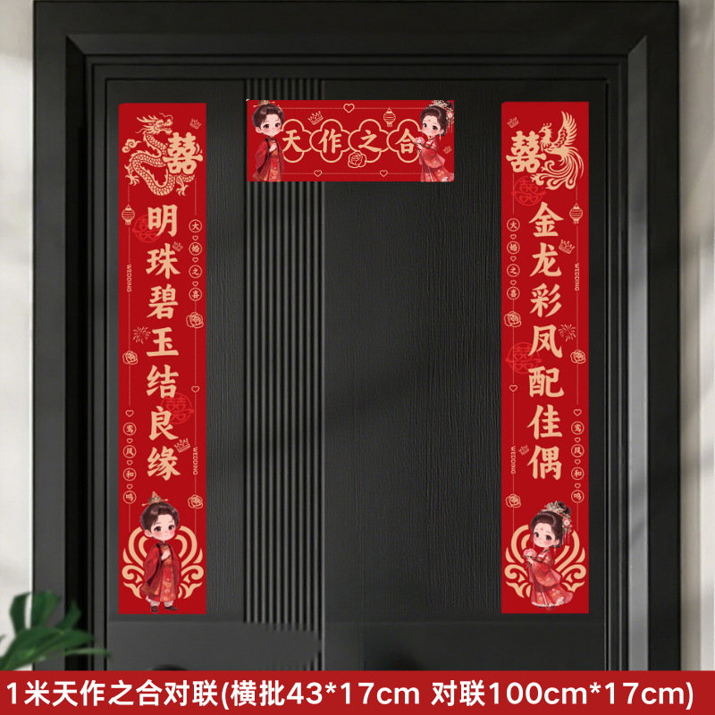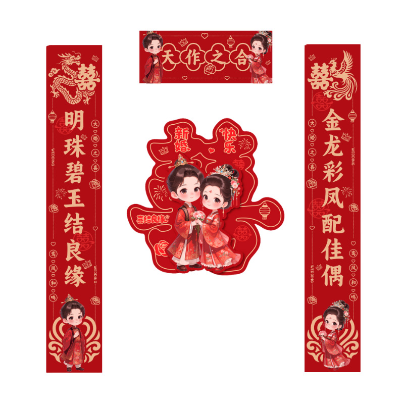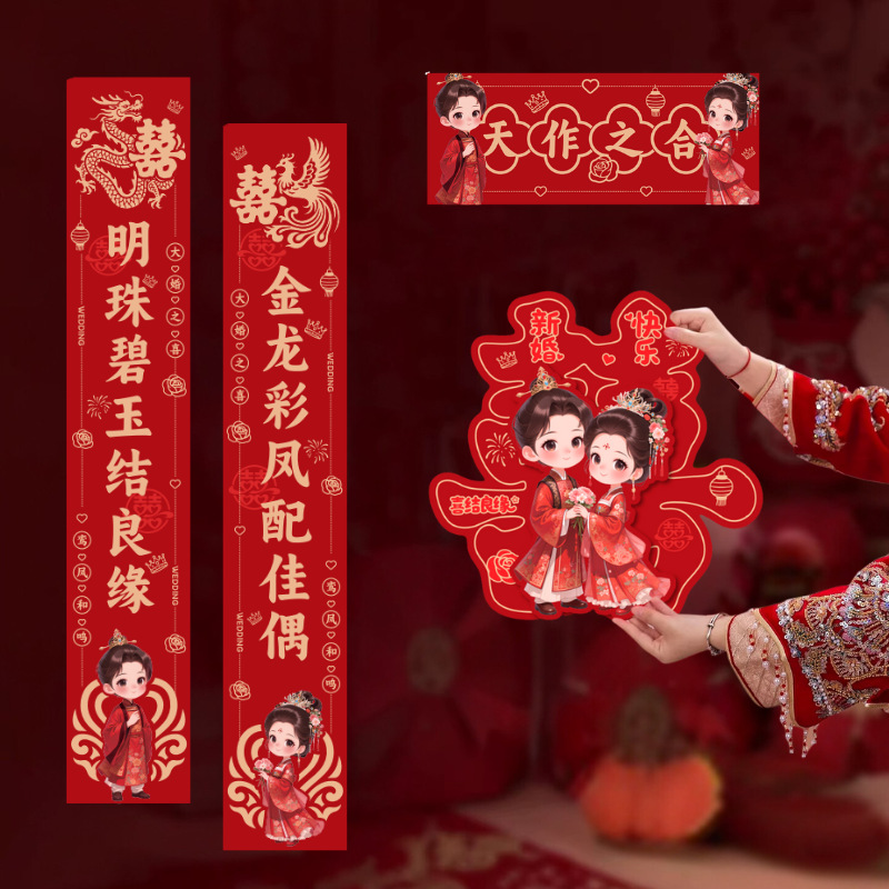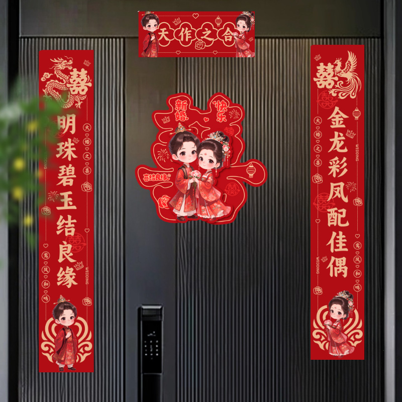 喜庆对联婚庆装饰挂贴烫金对联喜庆门对子装饰婚房门结婚对联批发