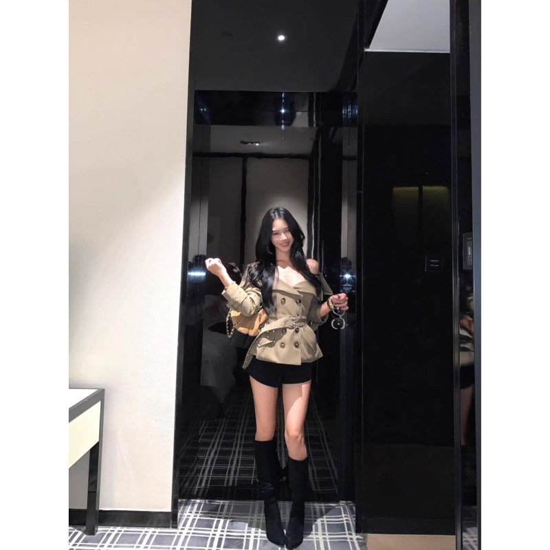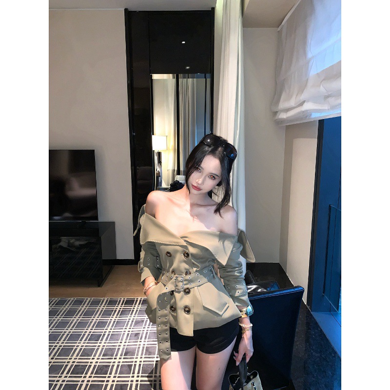 2025新款高级感双排扣长袖风衣外套女装秋季显瘦休闲裤短裤两件套