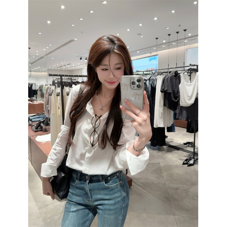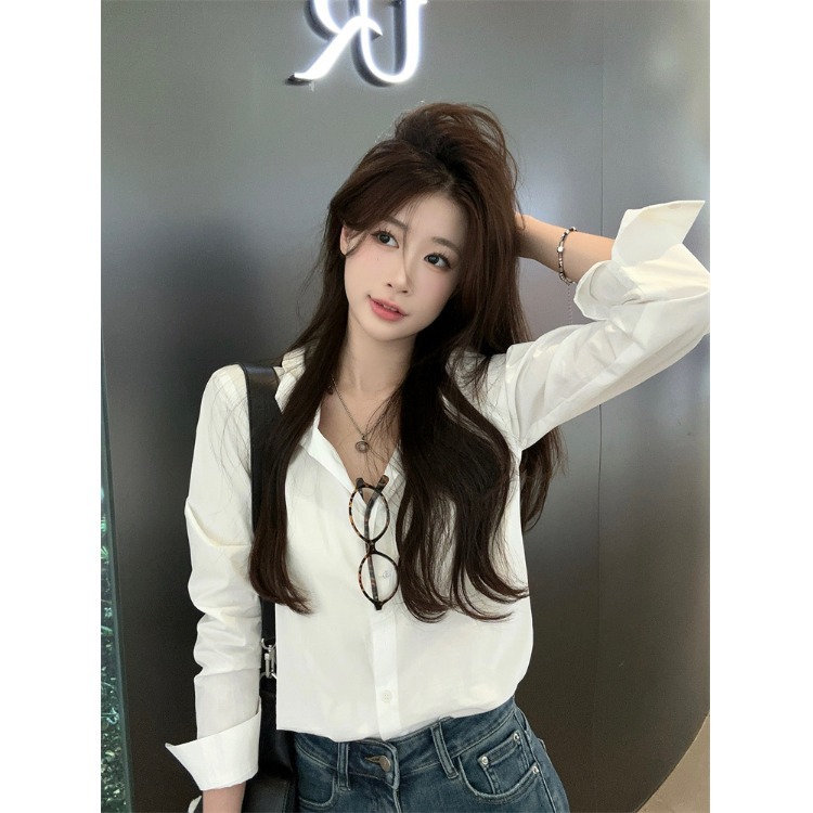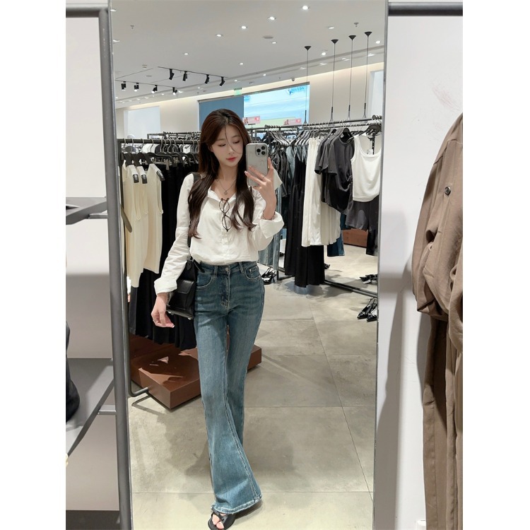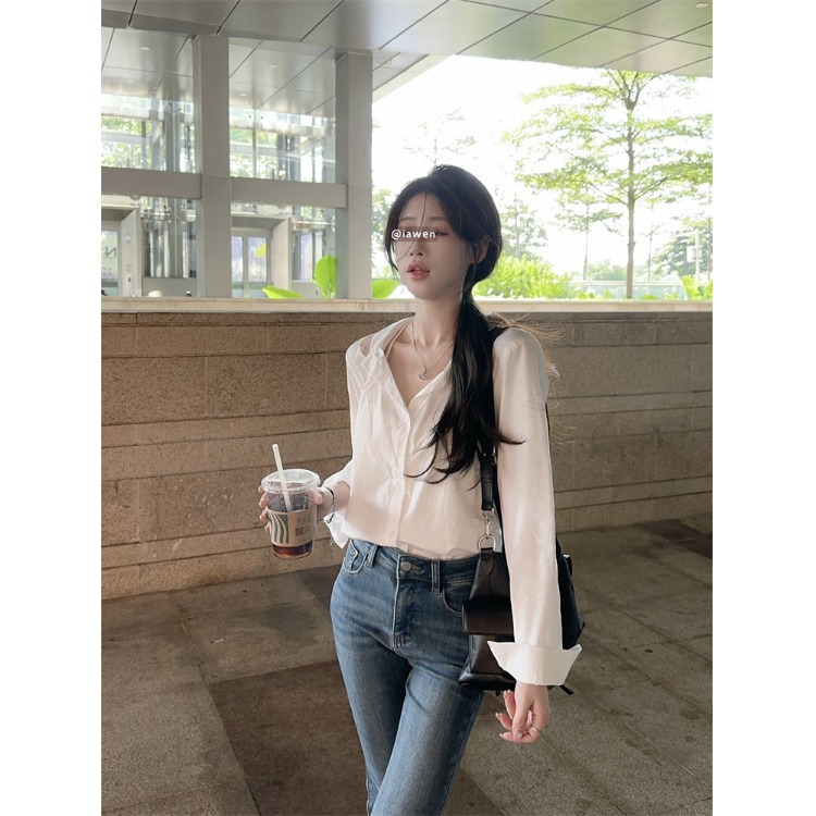 2025新款气质套装高级感白色长袖衬衫女秋季高腰显瘦牛仔裤两件套